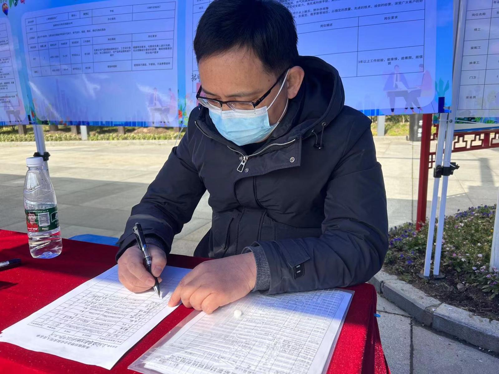 早上10点半不到,负责现场招聘的公司办公室主任李明面前的求职登记本上,已经写满了好几页的求职者信息,此时距离招聘会开始才刚过去一个多小时。