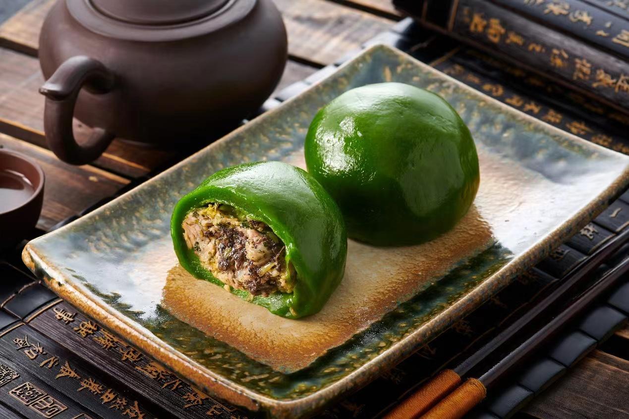 用粤菜“明星食材”鲍鱼、陈皮制成的鲍鱼陈皮猪肉青团自去年春季首次推出后,也受到了新老顾客们的欢迎。不少人尝鲜后表示口味比想象中要好得多,厨师长说:“很多顾客说我们这个青团‘货真价实’,我觉得这就是最高的评价。”
