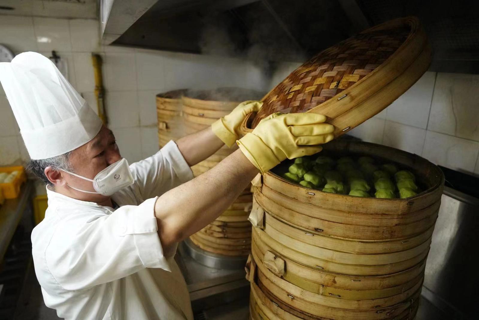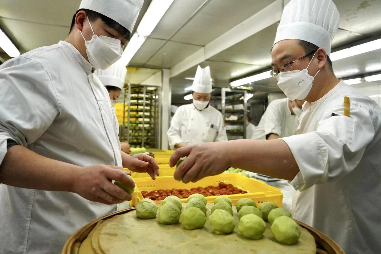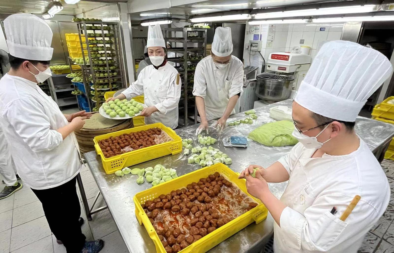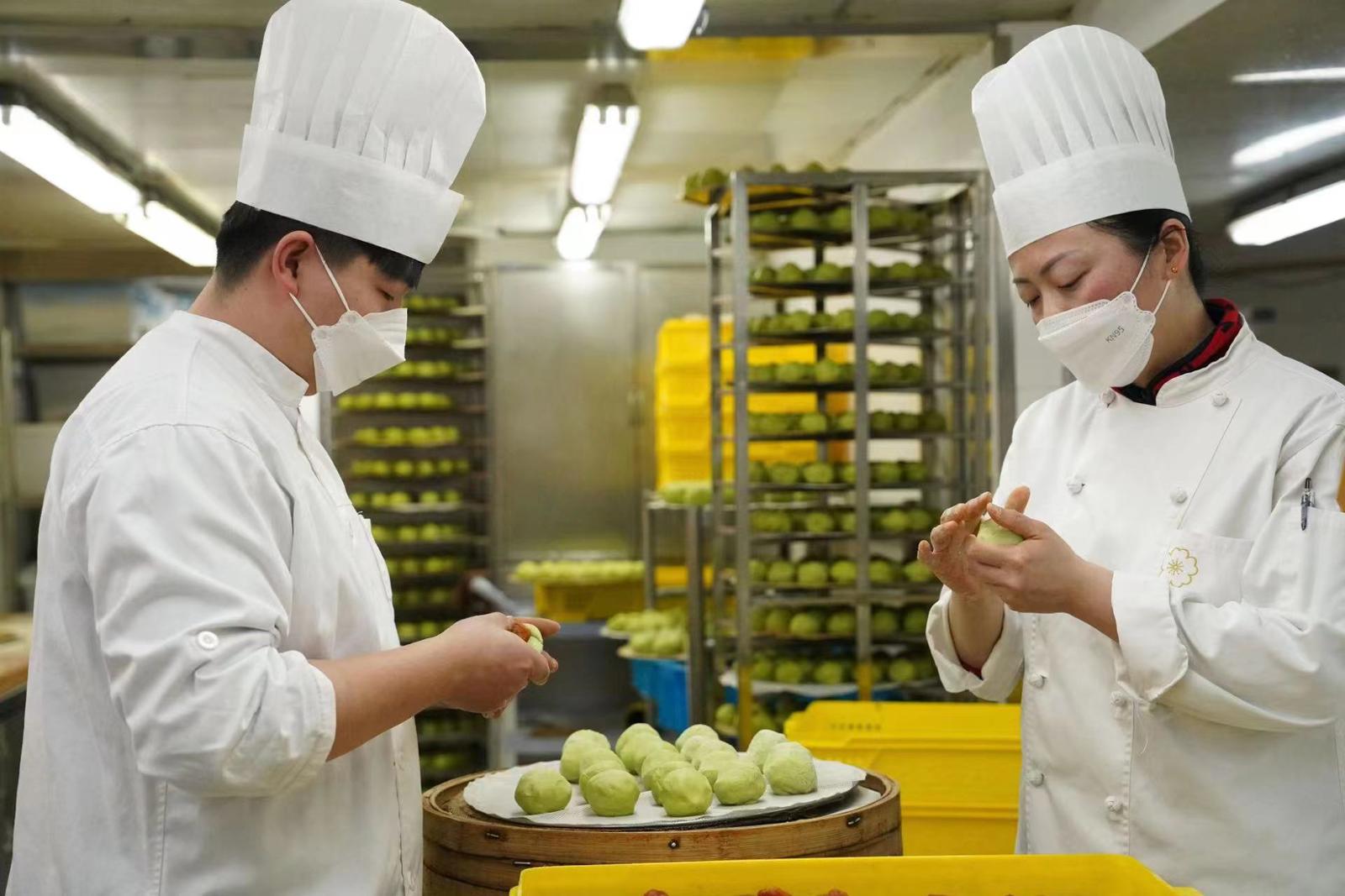 点心师傅们正忙碌地制作着青团(视频)