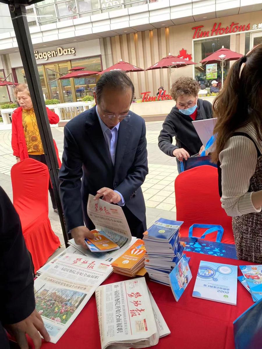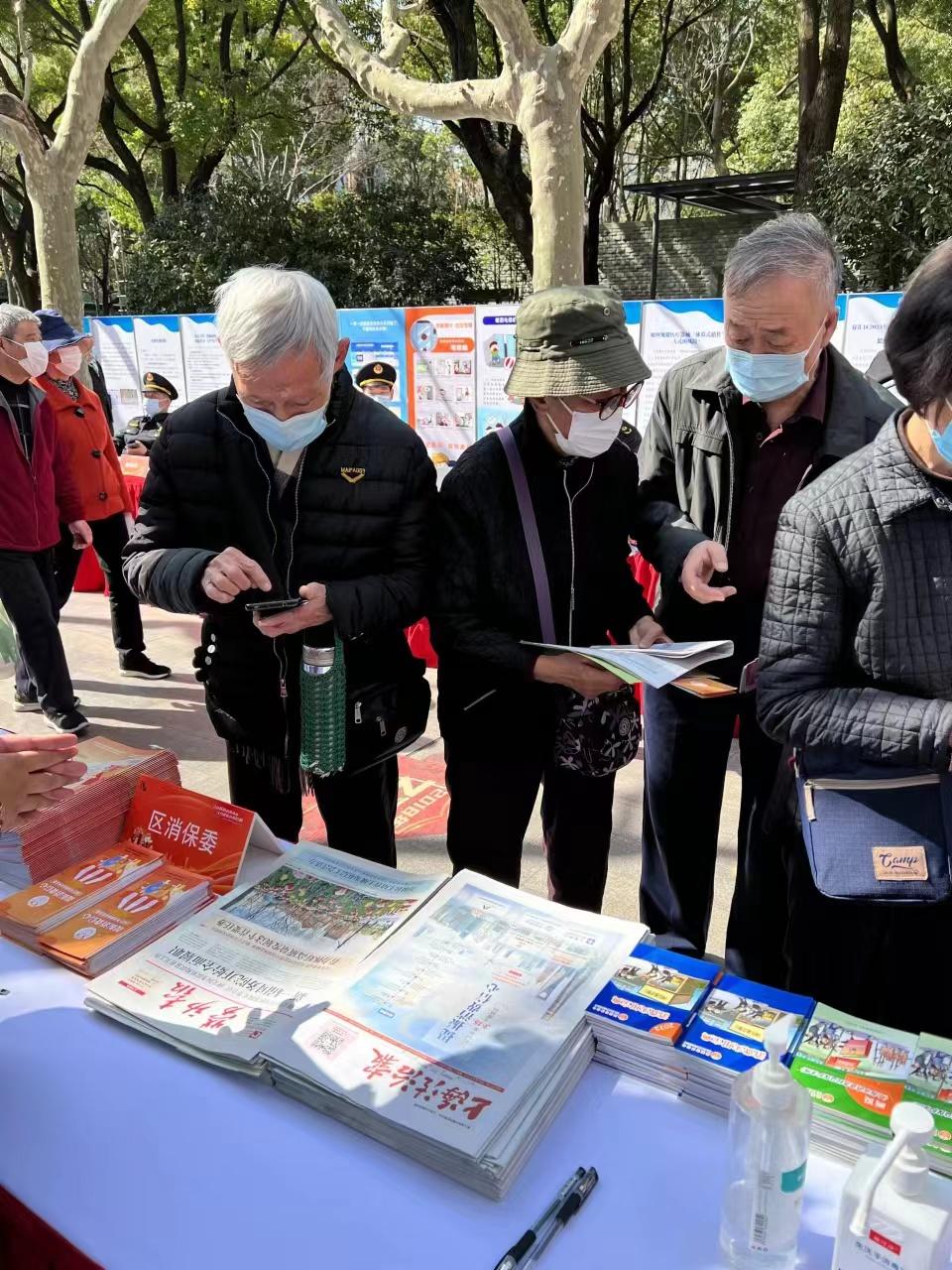 徐家汇公园,不少老年消费者前来咨询的同时,也争相取阅报纸