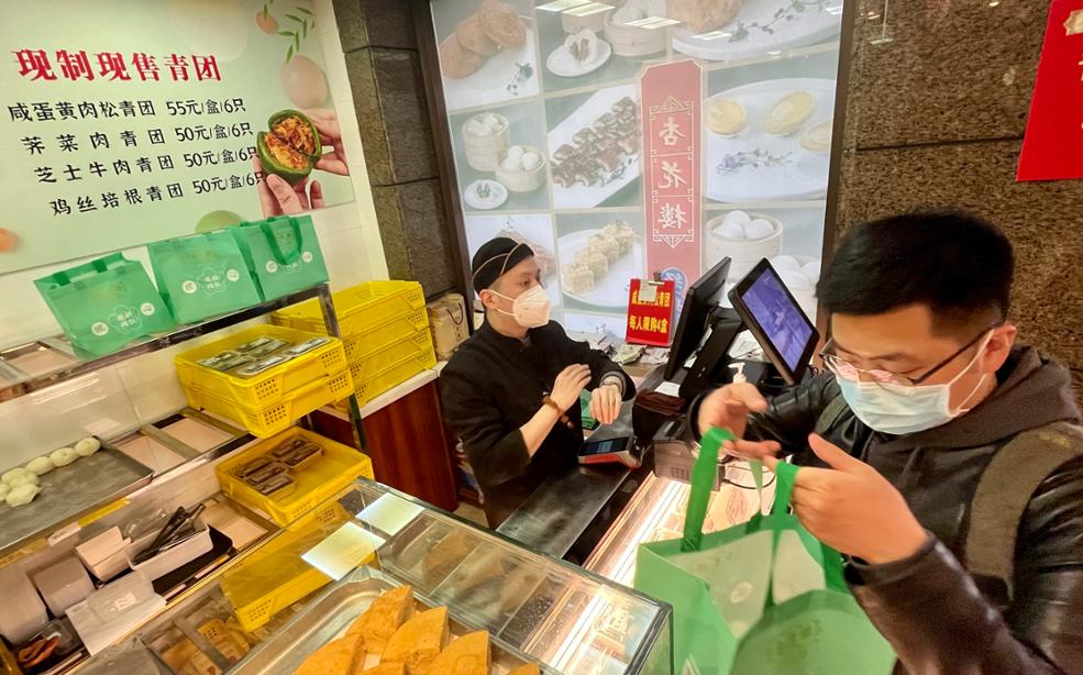 头图:今年青团销售已恢复至2021年同期水平。劳动报记者贡俊祺 摄影