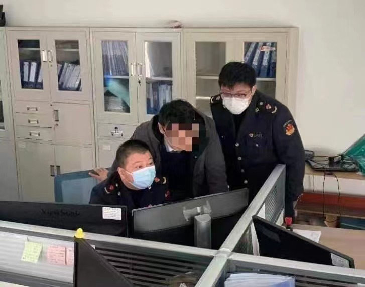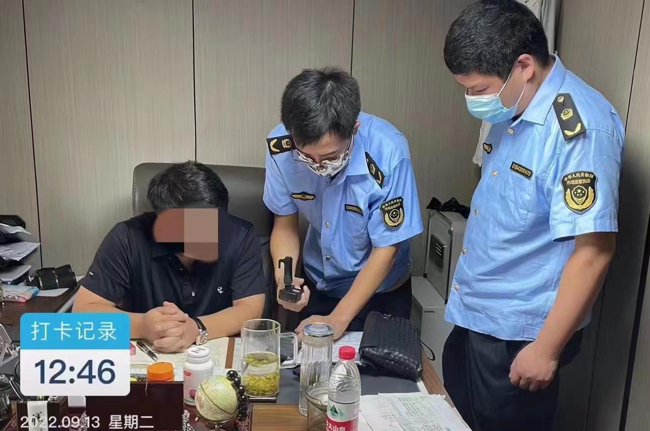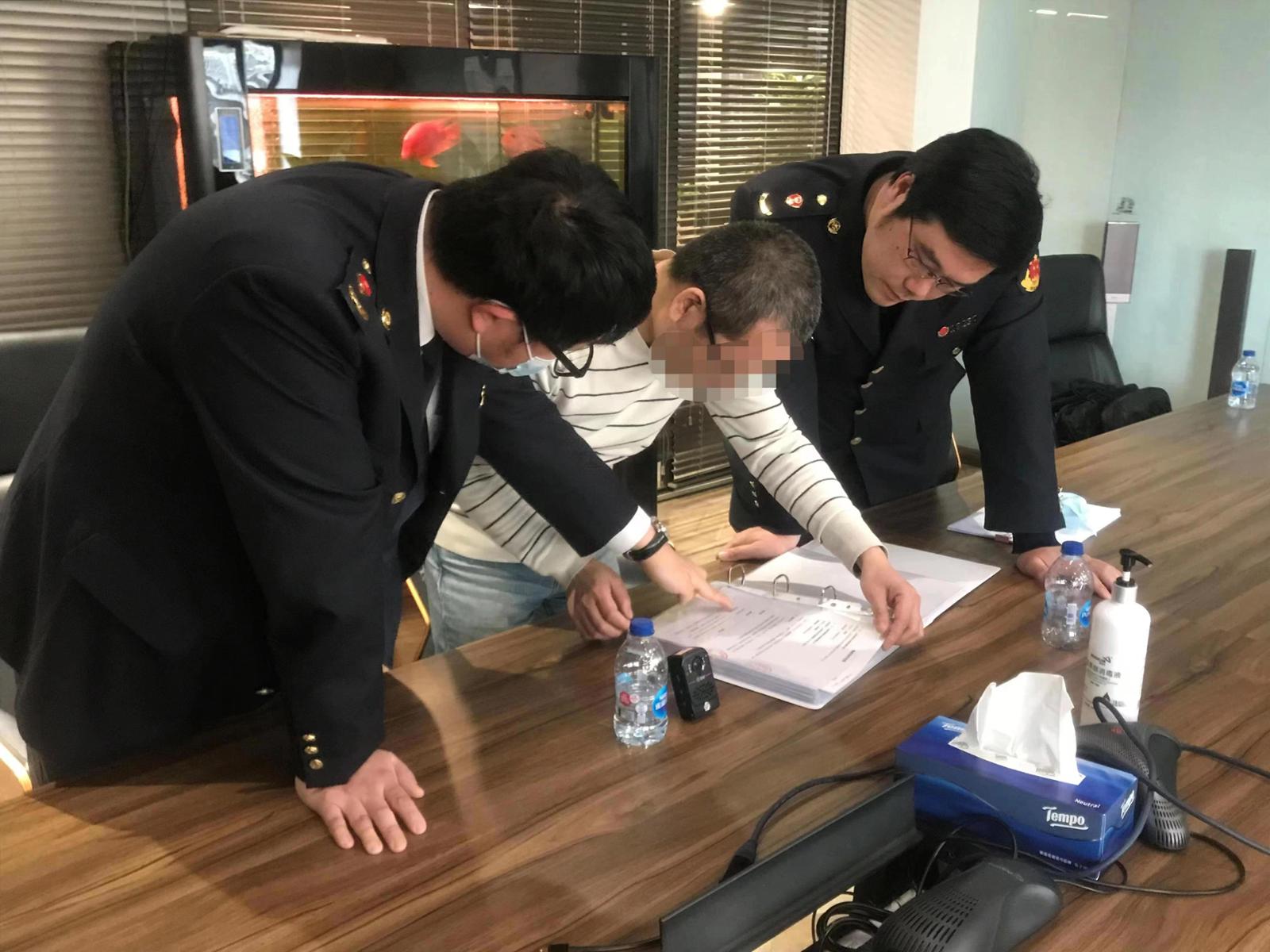 普陀区市场监管局执法人员正在当事人的办公场所固定相关证据。上海市市场监管局供图