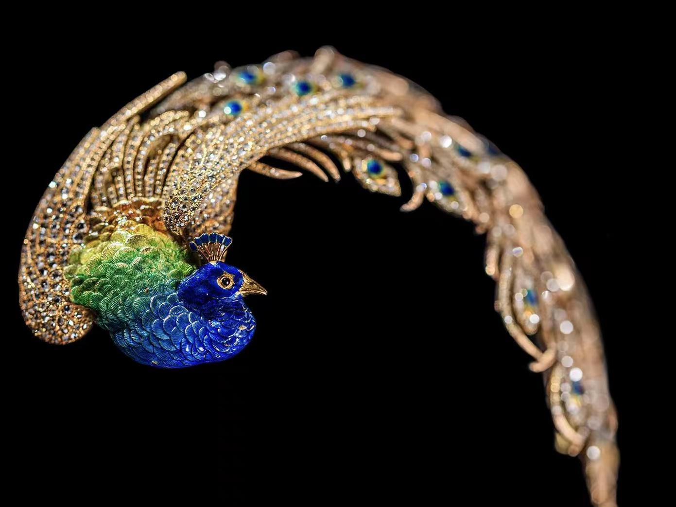 今年亮相进博会的这枚光芒闪耀的孔雀羽饰是珠宝艺术史中最为著名的设计之一,曾经在英国维多利亚与阿尔伯特博物馆、故宫博物院、美国大都会博物馆作为明星展品展出。如今她“飞入”进博会展厅,向世界再度展示东方魅力的极致之美。