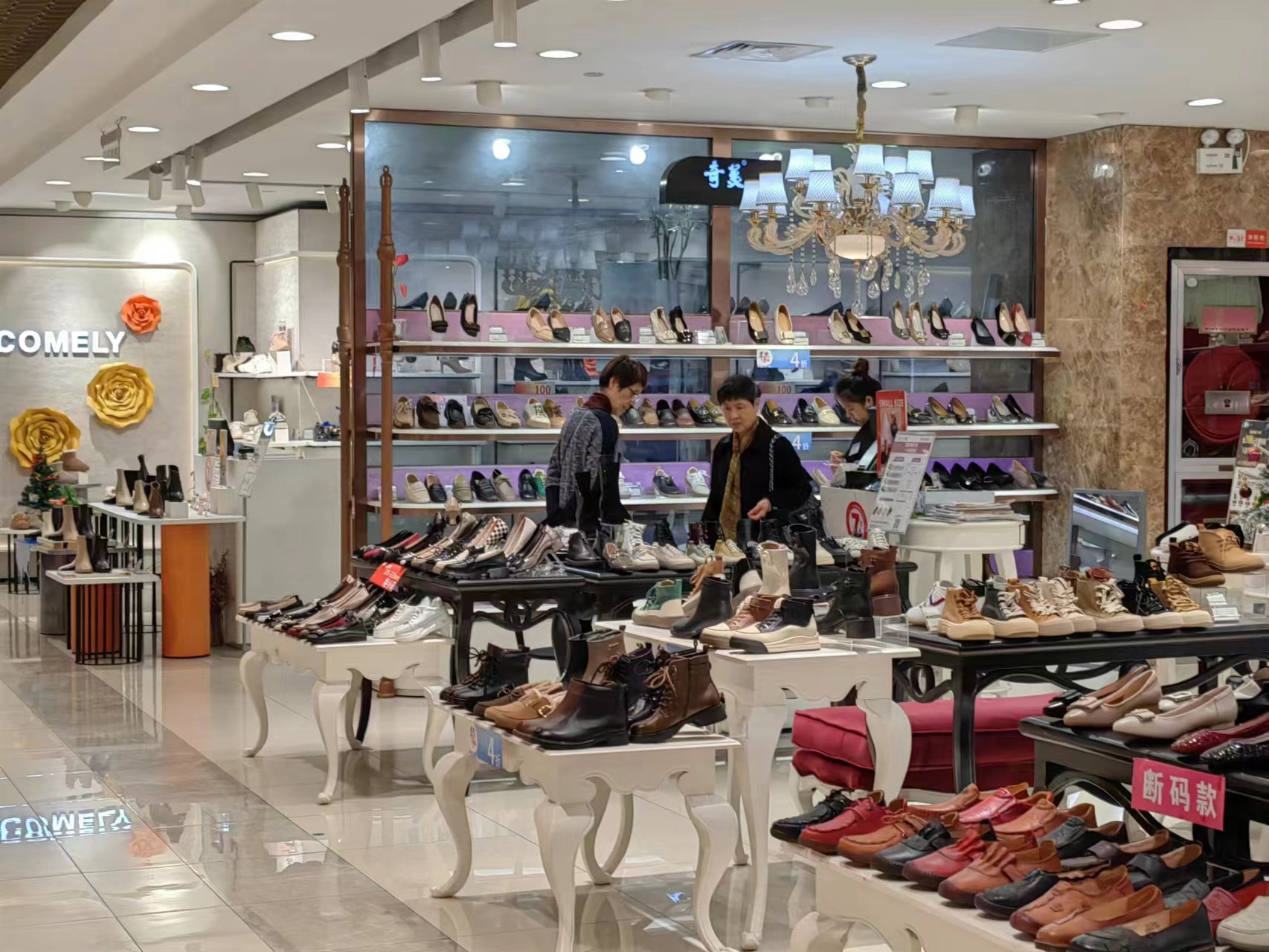 虽然店员向其推荐了多款鞋子,并拿出了半码贴来解决不跟脚的问题,但最后两位阿姨还是表示“再看看”,走向了下一家店铺。店员用布将鞋底擦干净后重新摆回了货架上,等待着下一位顾客。与隔壁挂着“中华老字号”牌匾的蓝棠相比,显得有些落寞。