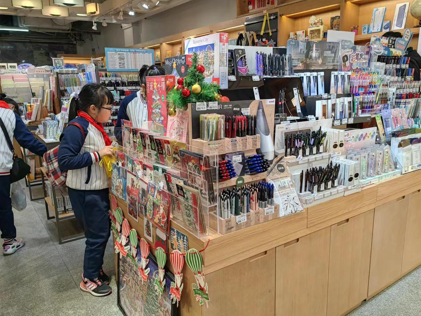 小朋友在百新文具馆内购买文具。于玘珺 摄影