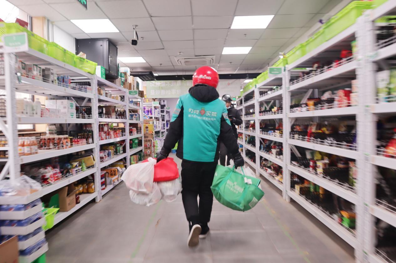 小哥出发,保障市民吃菜需求。叮咚买菜供图