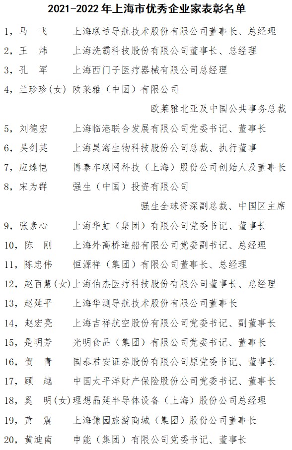 头图为2021-2022年上海市优秀企业家接受表彰。上海市企业家协会供图