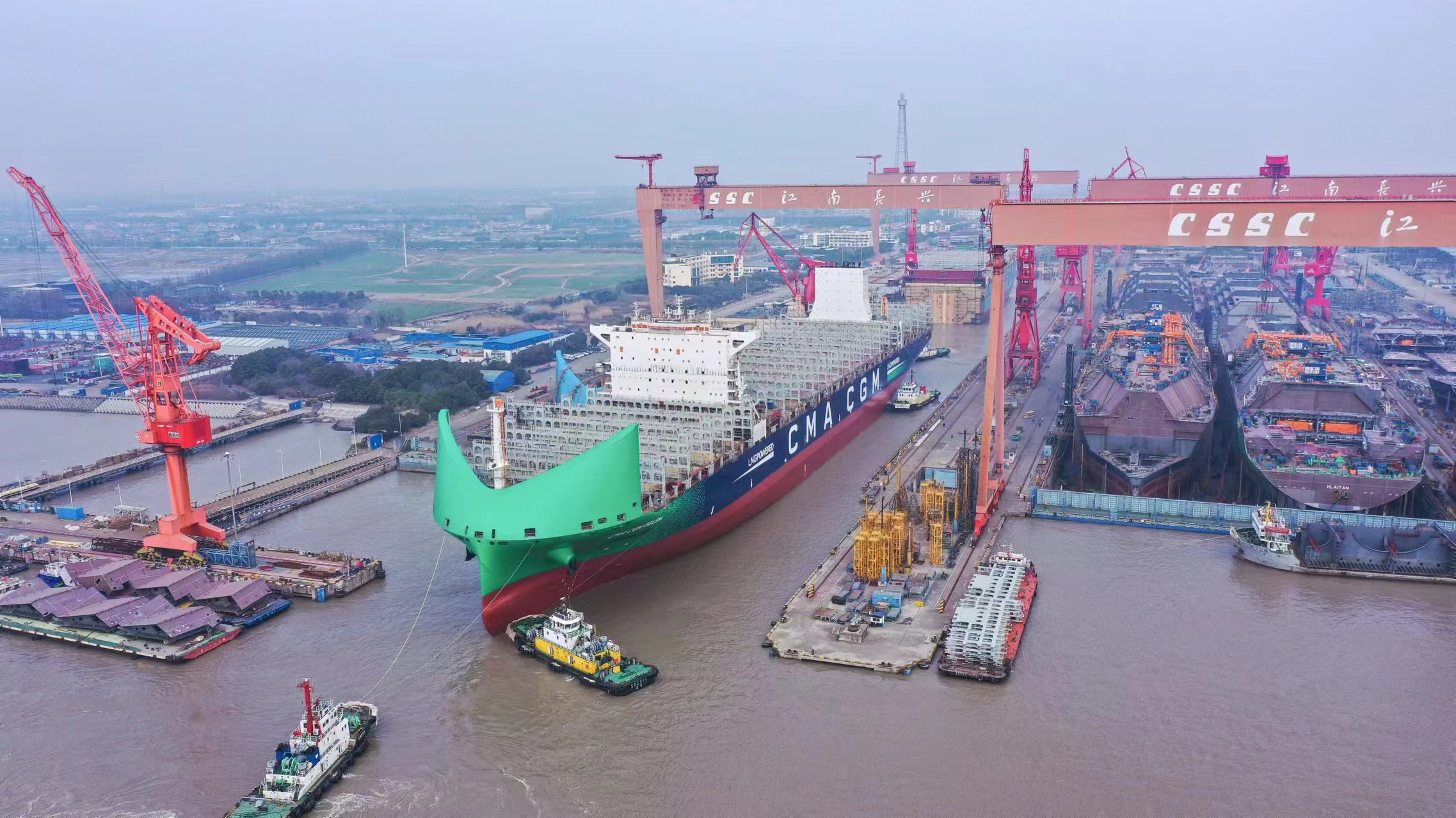 目前,江南造船自主研发设计的13000TEU(标准箱)甲醇双燃料动力大型集装箱船已斩获6艘订单,是今年全球首笔甲醇双燃料动力大型箱船订单;并还完成了1艘14000TEU大型集装箱船开工、1艘15000TEU大型集装箱船入坞,以及98000立方米超大型乙烷运输船、15000TEU大型集装箱船试航等多个生产节点。
