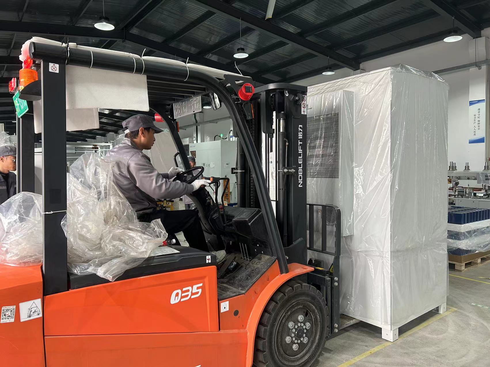 龙年开工第一天,位于奉贤新城金益路1号的弘正储能厂区内一片繁忙景象。一辆辆叉车正在把流水线上下来的储能产品运出车间,准备打包发往全国各地项目现场以及海外销售中心。