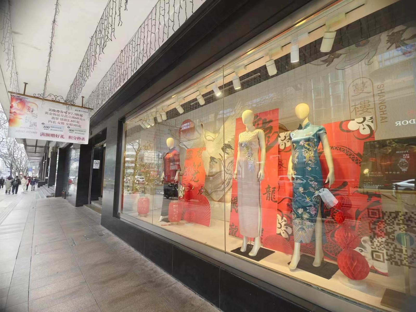 橱窗里的旗袍。劳动报记者陆燕婷 摄影