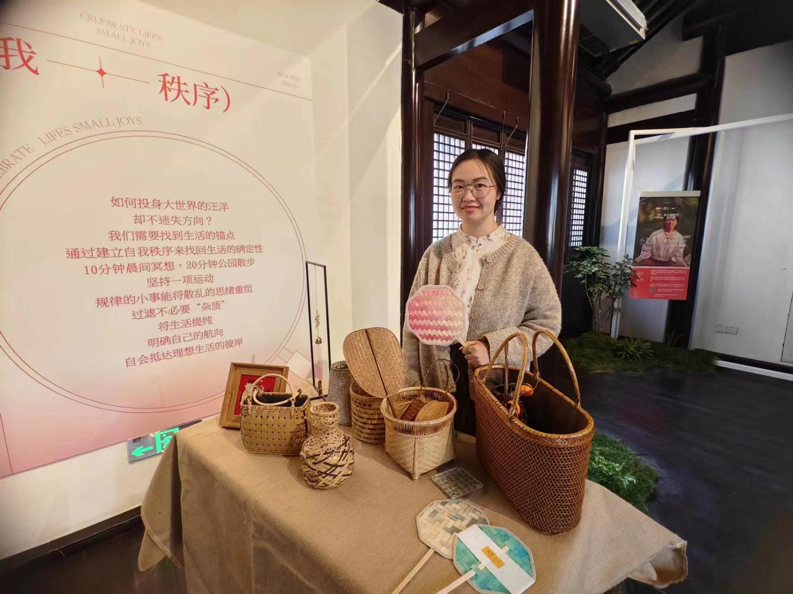 非遗竹编守艺人、“篾匠姑娘”徐无瑕展示其非遗竹编的非凡技艺。劳动报记者陆燕婷 摄影