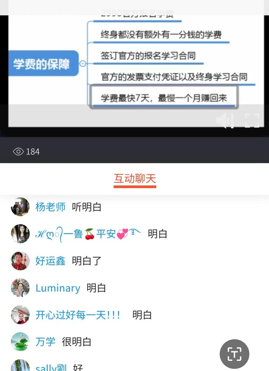 记者从安女士提供的试听课内容上看到,其中存在诸多夸大宣传和疑似虚假承诺。例如“第一个月,最低6000元以上,差多少补多少”、“一个月保底至少15000元”、“学费最快7天最慢一个月赚回来”“后期没有一分额外费用”等。