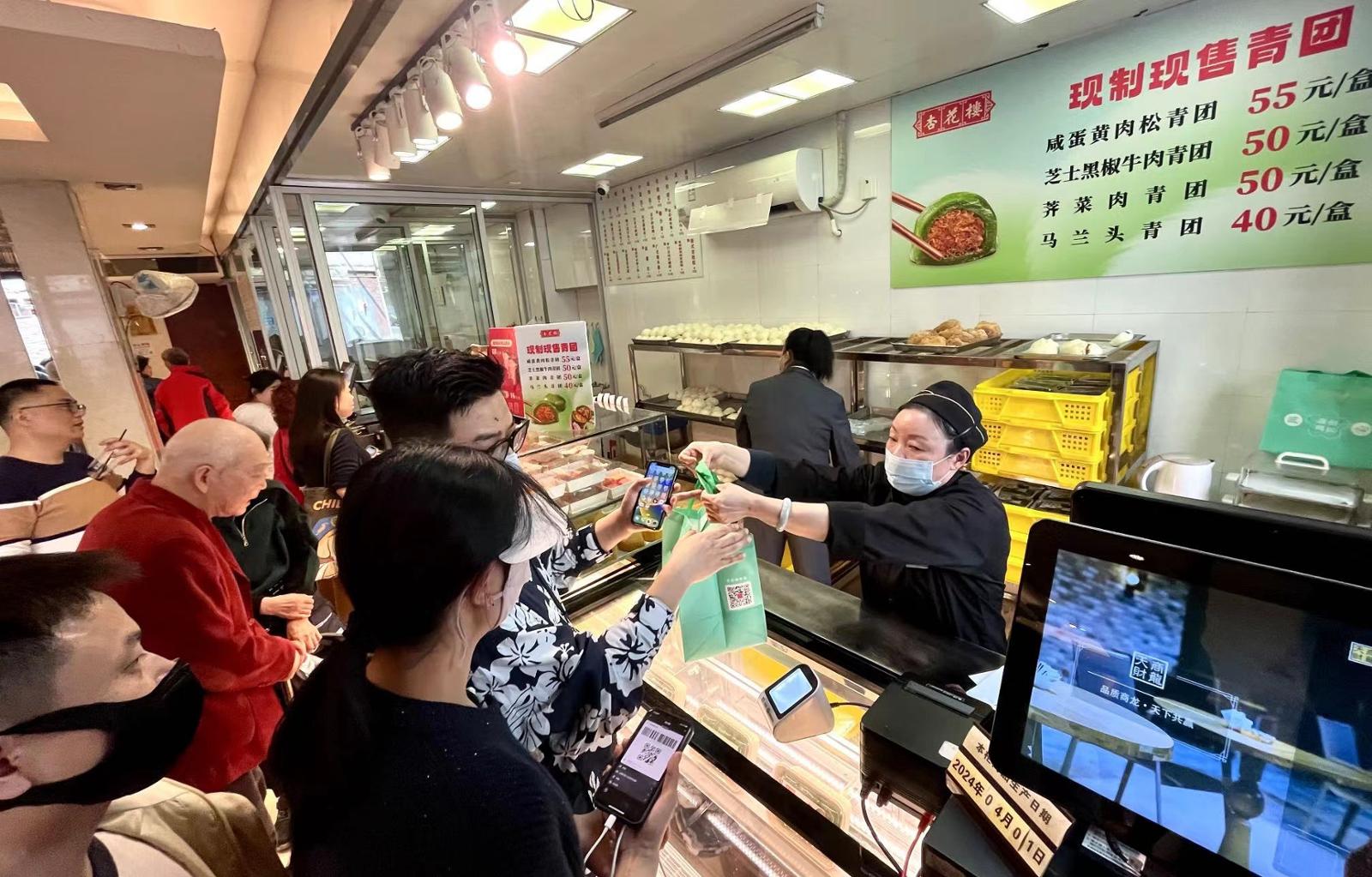 劳动报记者了解到,一般来说,青团销售在清明左右告一段落。而以老字号杏花楼为例,其去年的青团季销售额超过7100万元。