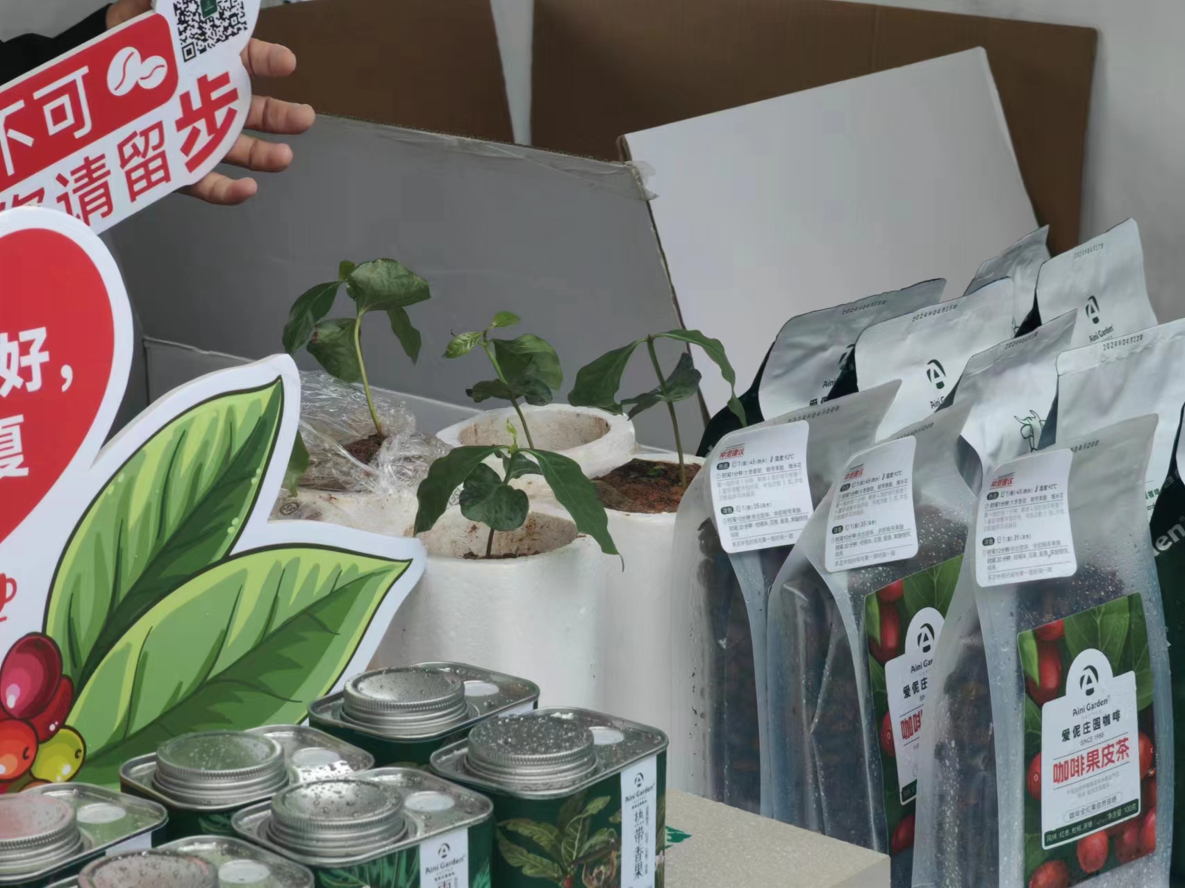 首次参加上海国际咖啡文化节的爱伲咖啡不仅带来了云南瑰夏咖啡豆、咖啡果皮茶等特色产品,还专门空运来了瑰夏咖啡的幼苗供咖啡爱好者认养。如果养护得当,两三年后或许可以在自家的阳台上收获咖啡豆。