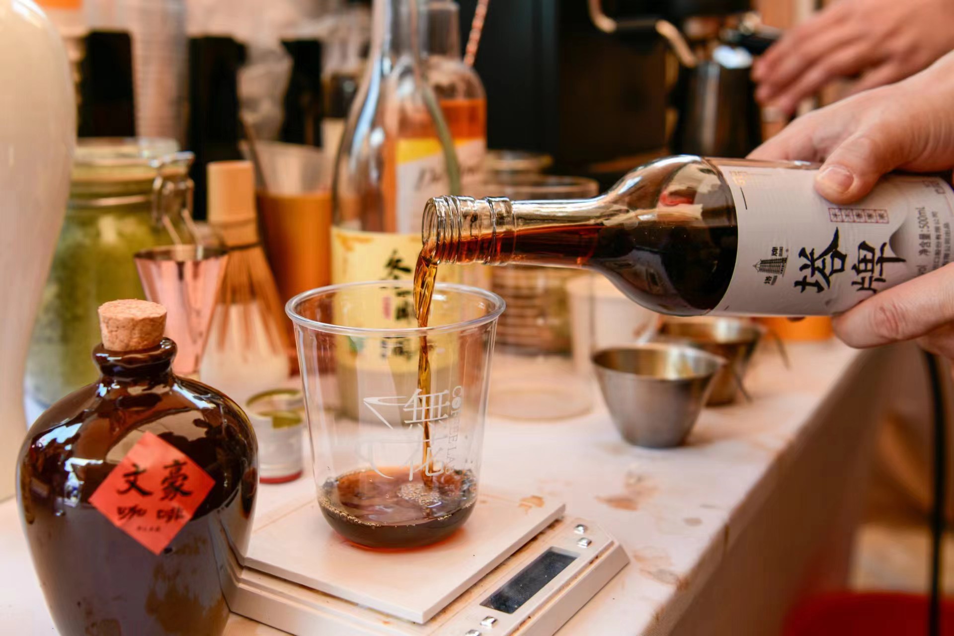 头图为黄酒咖啡正在制作中 劳动报记者 颜筱依 摄影