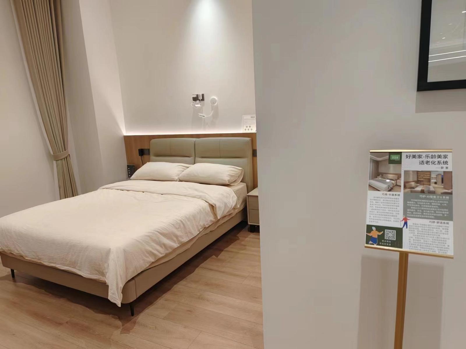 在现场可以看到,斜土店将实现设计、展示的智能化交互,通过全链路数字化、720度全景设计展示,构建沉浸式智慧场景智能化家装方案升级匹配,运用AI、智能感知技术以及养老服务系统,实现智慧生活养老科技助老的生活方式。围绕银发宜居品质提升需求,好美家开发“乐龄美家适老化体系”,基于居家生活不同空间,集合软硬装、AI智能、环境香氛等,分别形成巧思—乐装、巧护—智能、巧舒—舒适等三大系统。一系列极具心思的适老化设计和智能设备,可以监测长者的睡眠质量、呼吸率、活力能力,预测跌倒风险,帮助老人得到及时救治;全平地坪无障碍设计、地柜悬空轮椅进出无阻碍、10°倾斜梳理柜镜面设计、多角度冲淋、助力扶手和坐浴凳功能于一体的助浴系统、快速疏水防滑地垫、智能床等,都为“银发一族”创造了安心、舒适、高质量的居家生活体验。