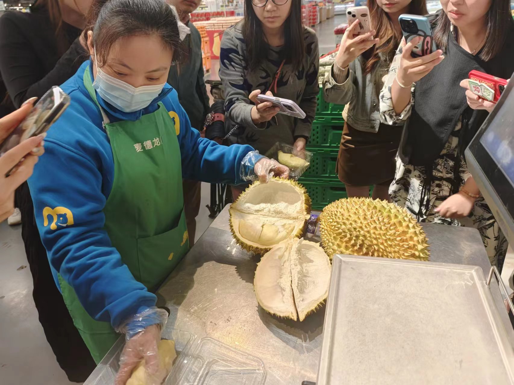 榴莲沪上商超卖场现开榴莲。劳动报记者陆燕婷 摄影