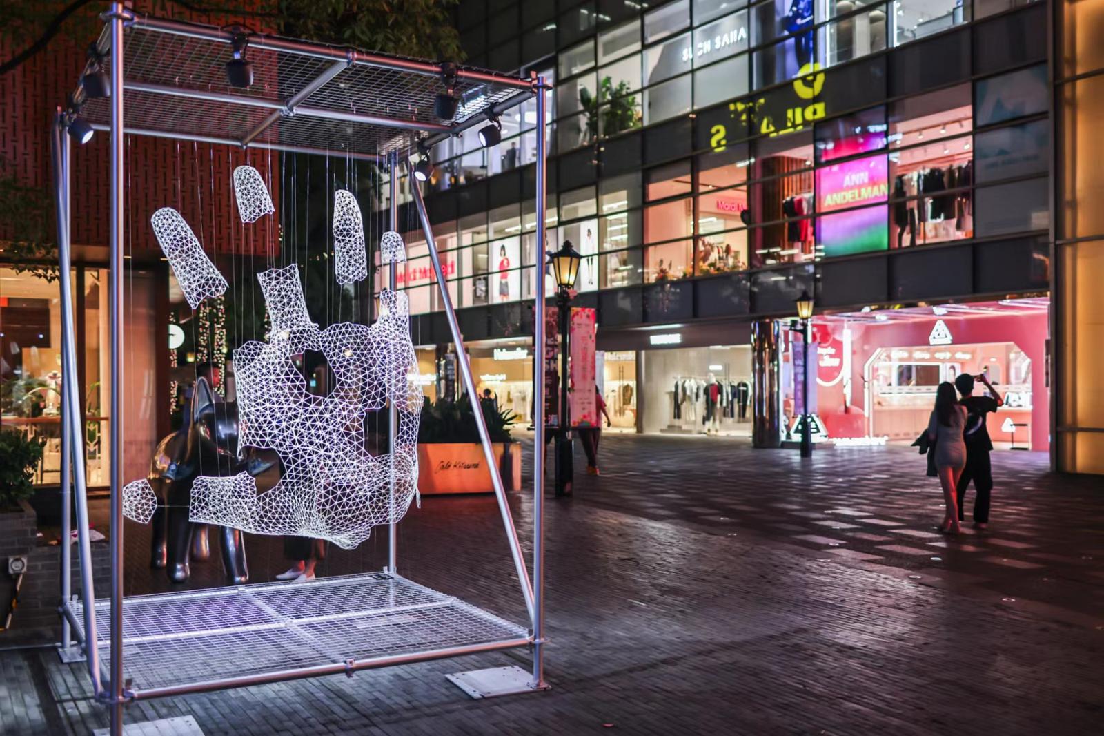 在新天地广场感受“惊奇力场”。此次,新天地广场的两件作品——“物我”和“转运云”充满奇趣:与云朵互动,体验物我相忘;希望给人带来的感受,如同当游人走进游乐场大门那一瞬间,在见到眼前奇妙的场景时立即产生一种惊奇感。