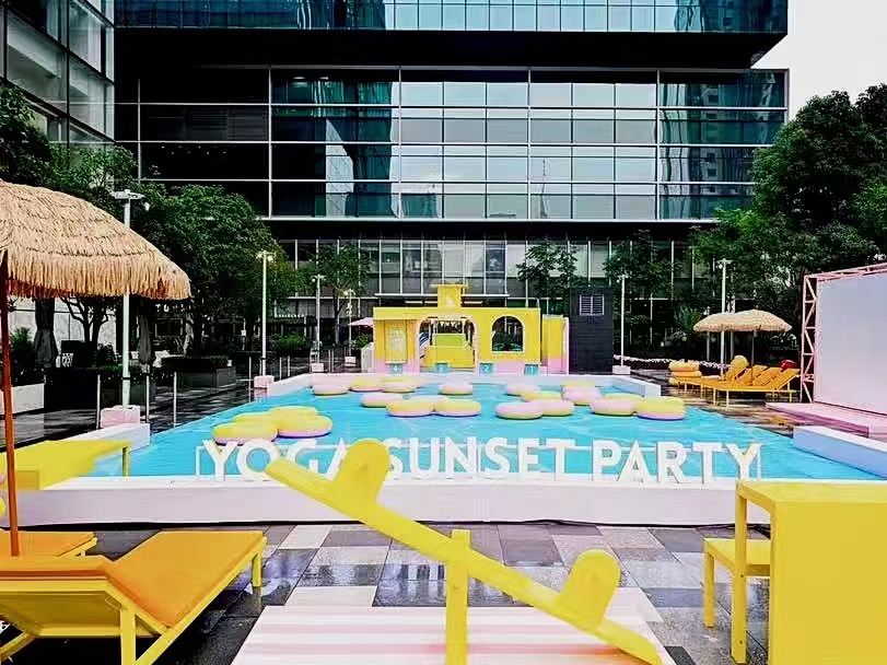 步入静安嘉里中心JAKC,设置了独具Andy艺术风格的展陈互动区,有如“垂直网球场”“飞驰骑行”“徒步穿越”“花样泳池”“观景平衡木”等趣味立体艺术装置。突破室内外建筑固有印象,将公共艺术融入城市景观,走进商场宛如置身一片充满艺术气息的运动场。除此之外,即日起至7月7日,静安嘉里中心JAKC南广场将“变装”为缤纷泳池乐园,开放限时两周的瑜伽落日派对,更有夏日瑜伽、露天电影等精彩活动,多维度丰富消费者的夏日生活。