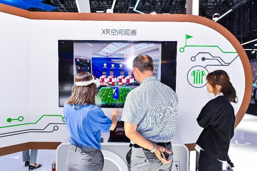 今年MWC上海的举办时间恰逢欧洲杯赛事正酣,参展观众可以在中国移动展台深度体验智慧科技观赛。在AR、VR技术上运用了空间观赛新模式的“VIP观赛包厢”,观众能够享受实时比赛数据和首发球员信息的可互动3D战术沙盘,沉浸式情感受模拟真实下雨、落叶等自由落体效果的增强3D视频内容,在展台感受欧洲绿茵场。