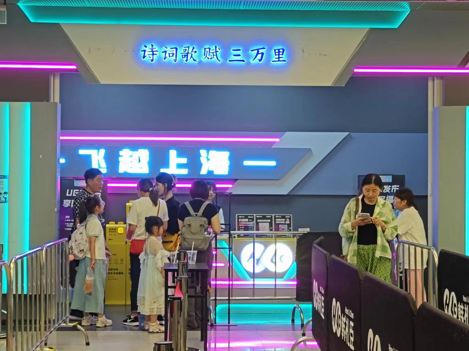 第一百货商业中心韩礼臣潮玩店店长张贝贝告诉劳动报记者,进入暑期档,有不少青少年在家长陪同下慕名而来,体验一把平价的“飞越上海”项目。目前来看,其7月的客流量较之6月已有明显攀升,好在现场秩序井然有序,平均排队时间在半小时内可控,到双休日客流会有更为明显的提升。