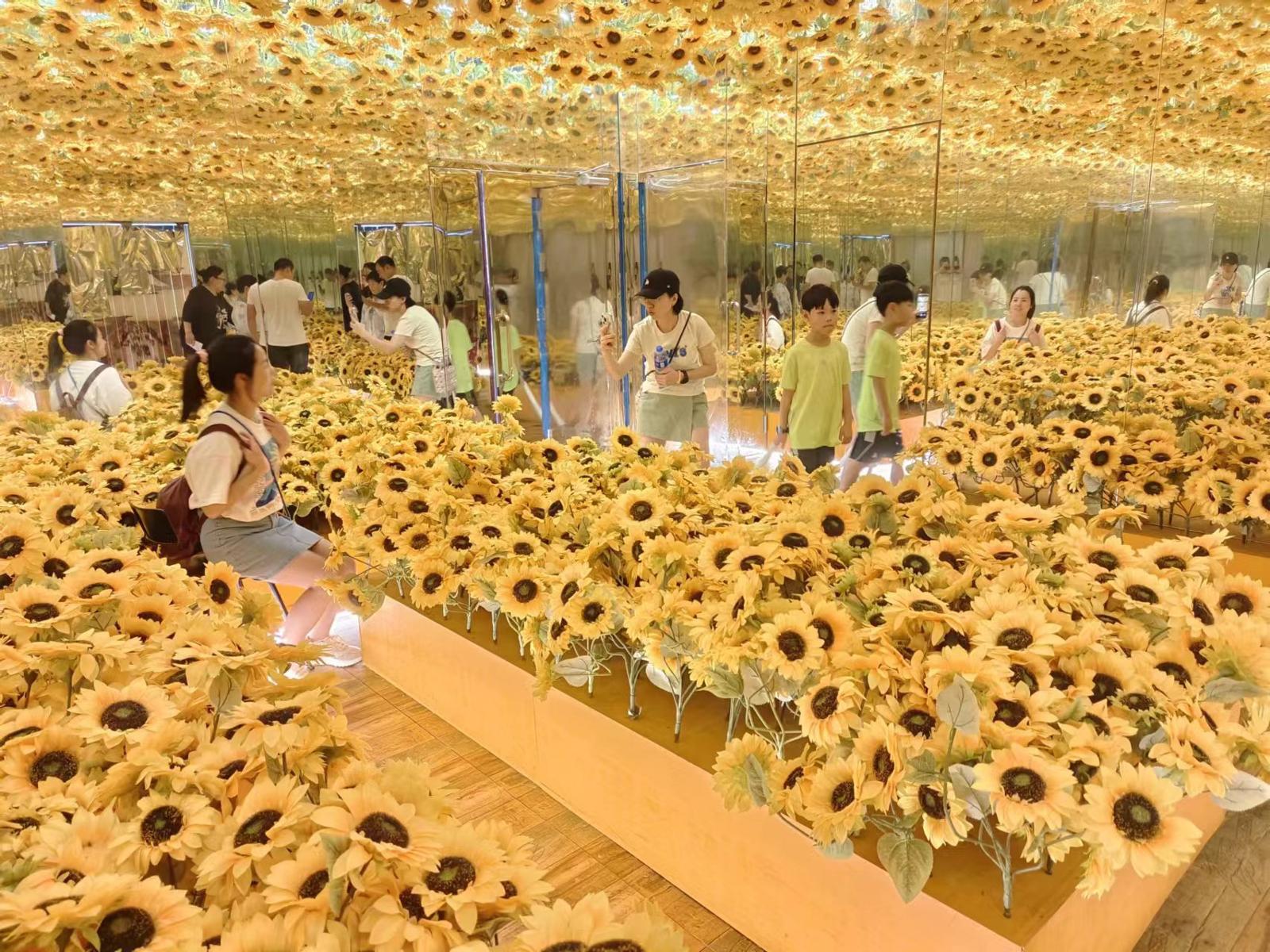 “年龄段跨度很大,小至抱在手中的婴孩,再到成年人都能来体验。当然暑期最多的还是中小学的青少年为主。”第一百货商业中心梵高星空门店负责人孙丽告诉劳动报记者,整个室内空间布置了许多精美的场景供市民游客拍照打卡,其中,如梵高的向日葵就以一整间装满向日葵的屋子,吸引了许多人前来留影。“今年暑期,我们也对室内场景进行了翻新,有一部分陈旧的场景拆除,焕新,通过变化来吸引更多客流。”