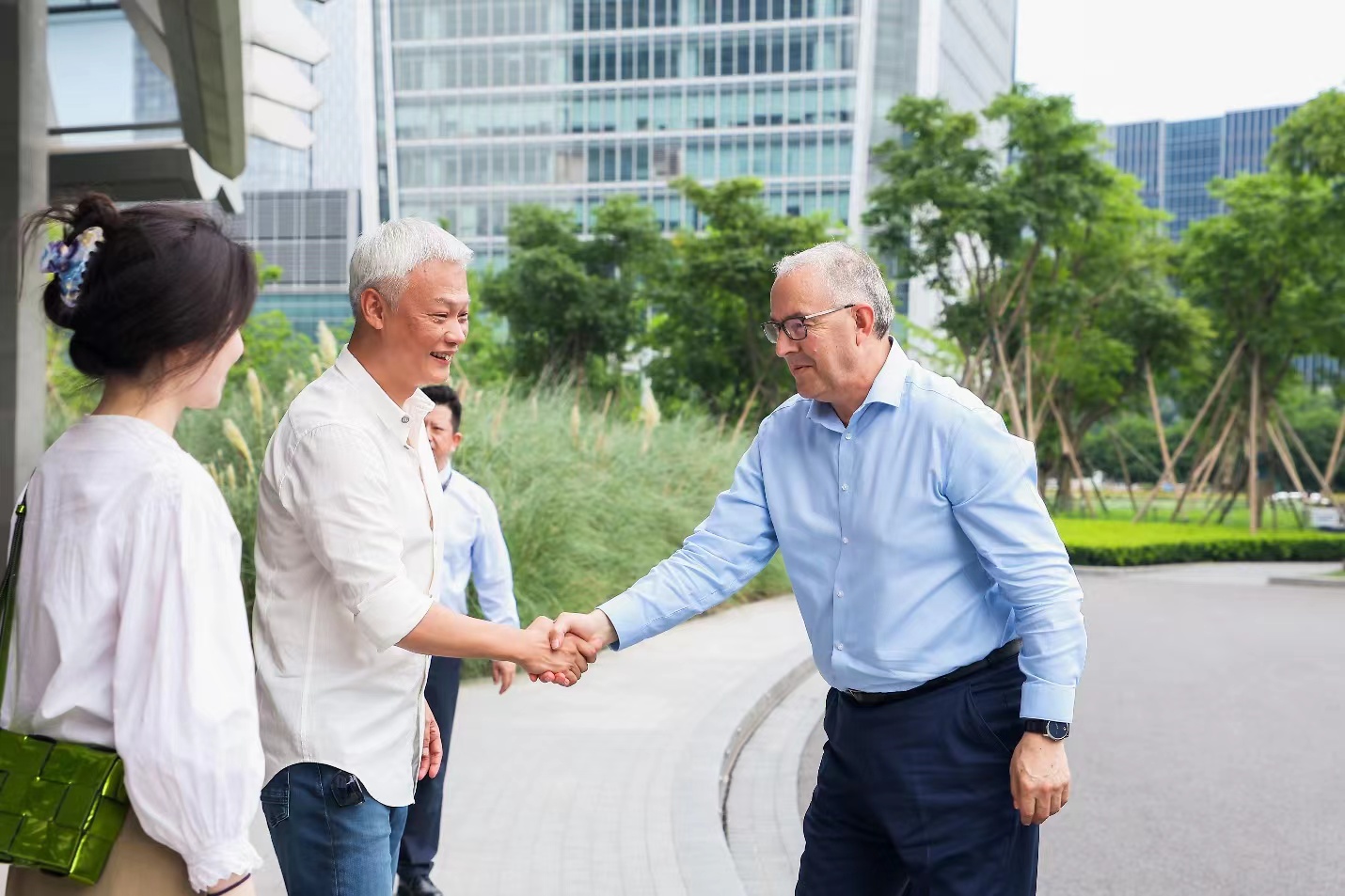 西岸集团董事长李飞宇先生迎接鹿特丹市市长阿布塔莱伯先生。Gate M西岸梦中心供图