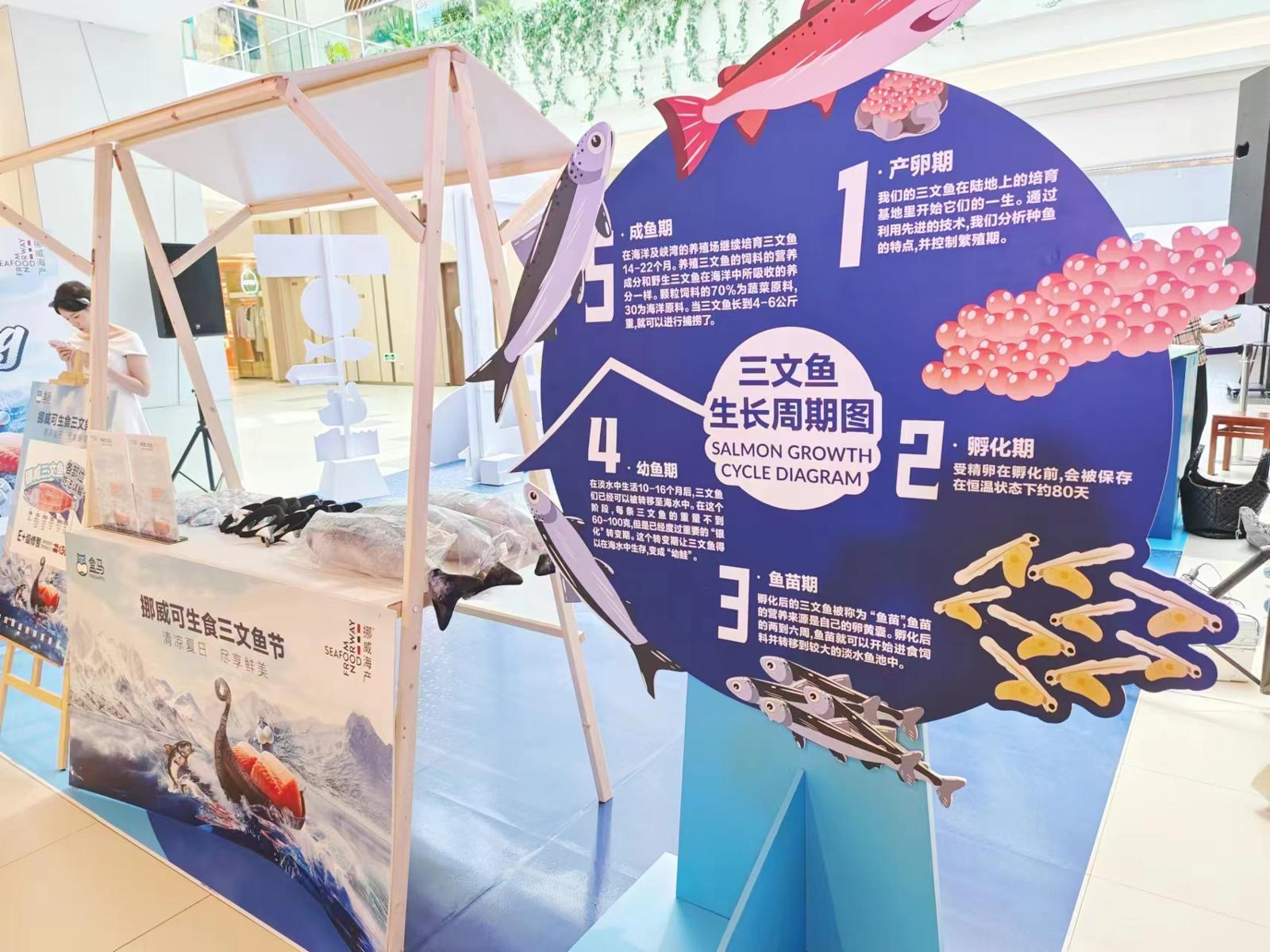了解各种三文鱼的小知识。劳动报记者陆燕婷 摄影