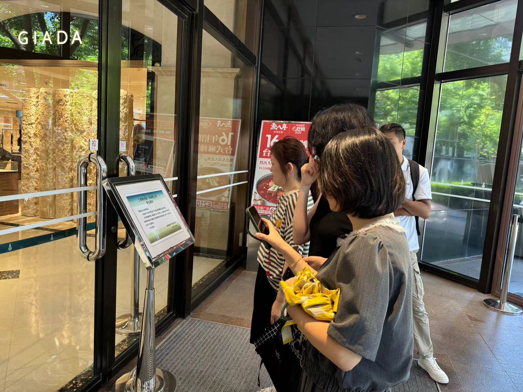市民驻足查看梅龙镇广场的歇业通知。李美慧 摄影