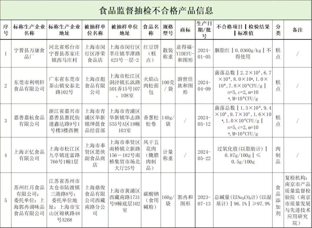 5批次食品抽检不合格。上海市市场监管局供图