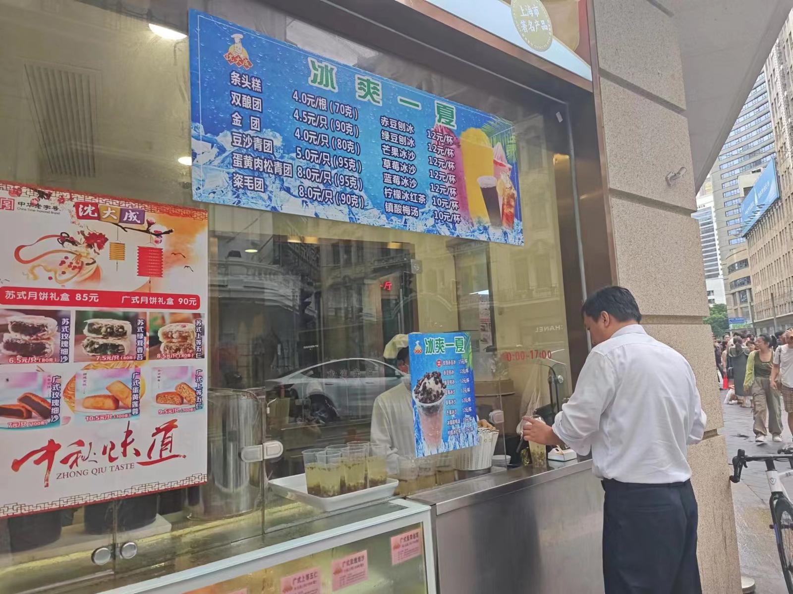 南京路沈大成店外,不少消费者赶来购买刨冰。劳动报记者陆燕婷 摄影