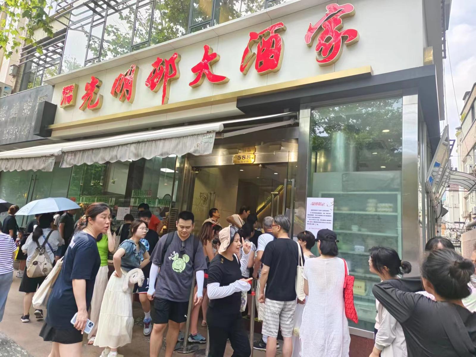 “正好在曙光医院看门诊,马上过来排队买月饼。现在买排队还好,再过几天就要排好几个小时了。”淮海路上老字号光明邨门前,已排起了长龙,市民张女士告诉劳动报记者,每年都会来买月饼,现场烘烤的味道好更锁鲜。