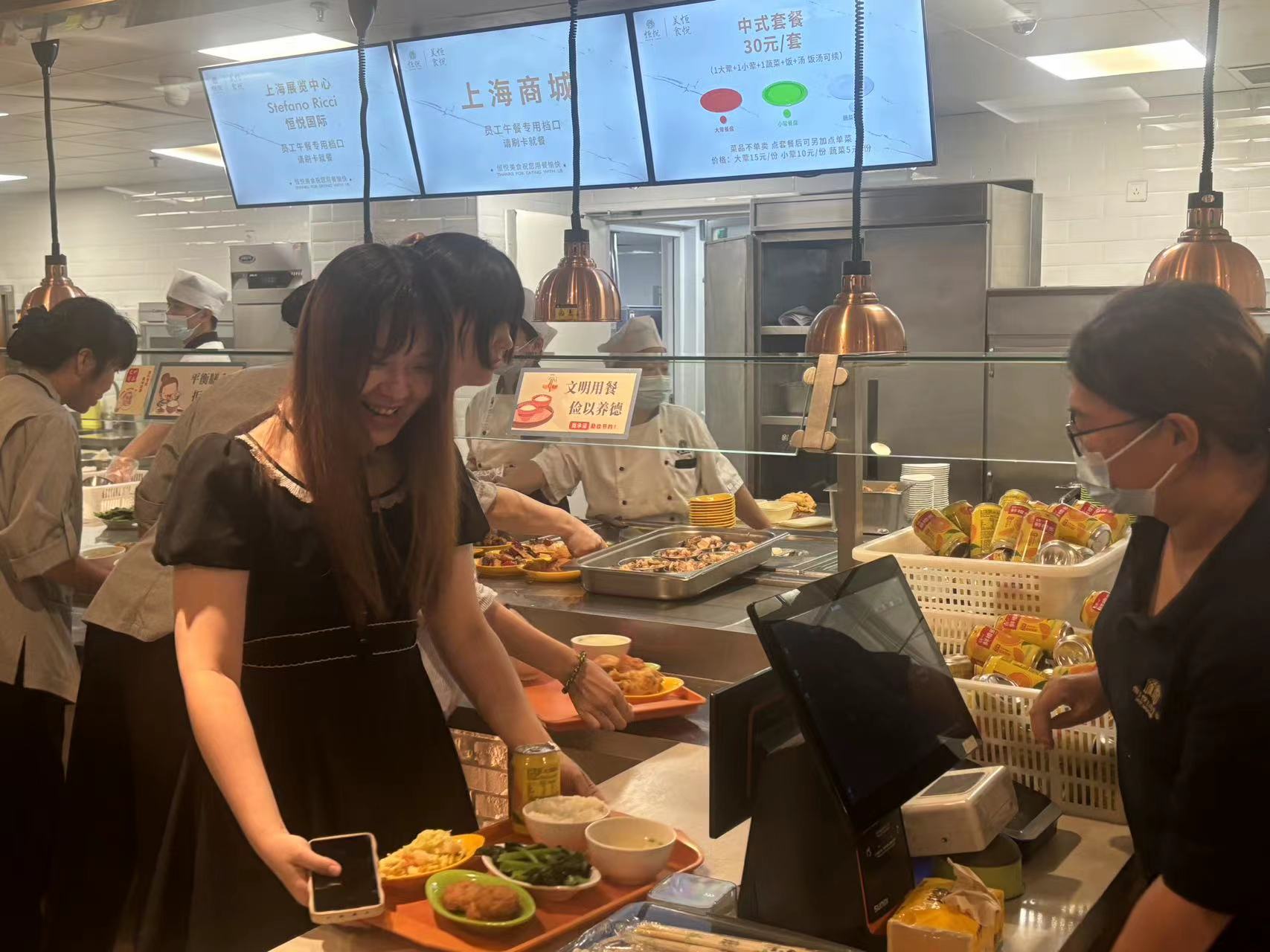“在对面的上海商城工作,平时也会在静安寺商圈觅食。但价格偏高。”午间时分,白领戴先生和同事来到上海展览中心西二馆B1层的恒悦简厨白领餐厅就餐。他告诉劳动报记者,公司为员工找到了这个市中心的“宝藏用餐地”,一餐30元能够实现荤素搭配,有饭有汤。