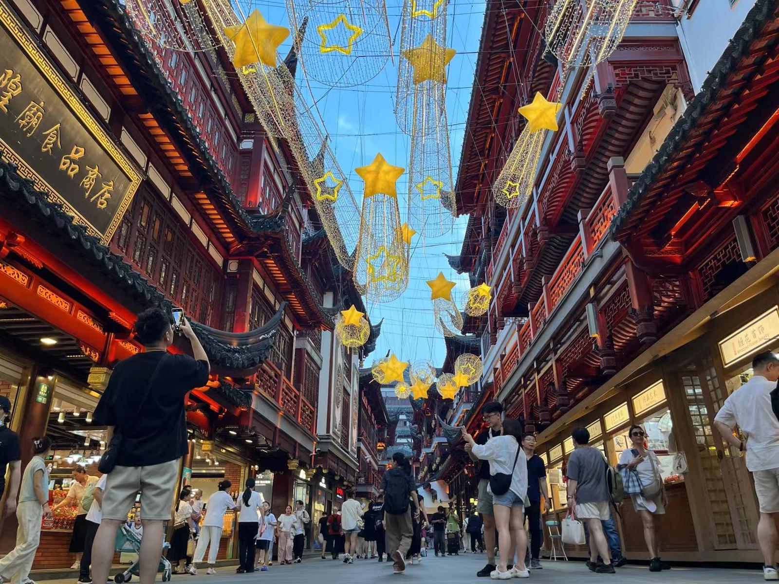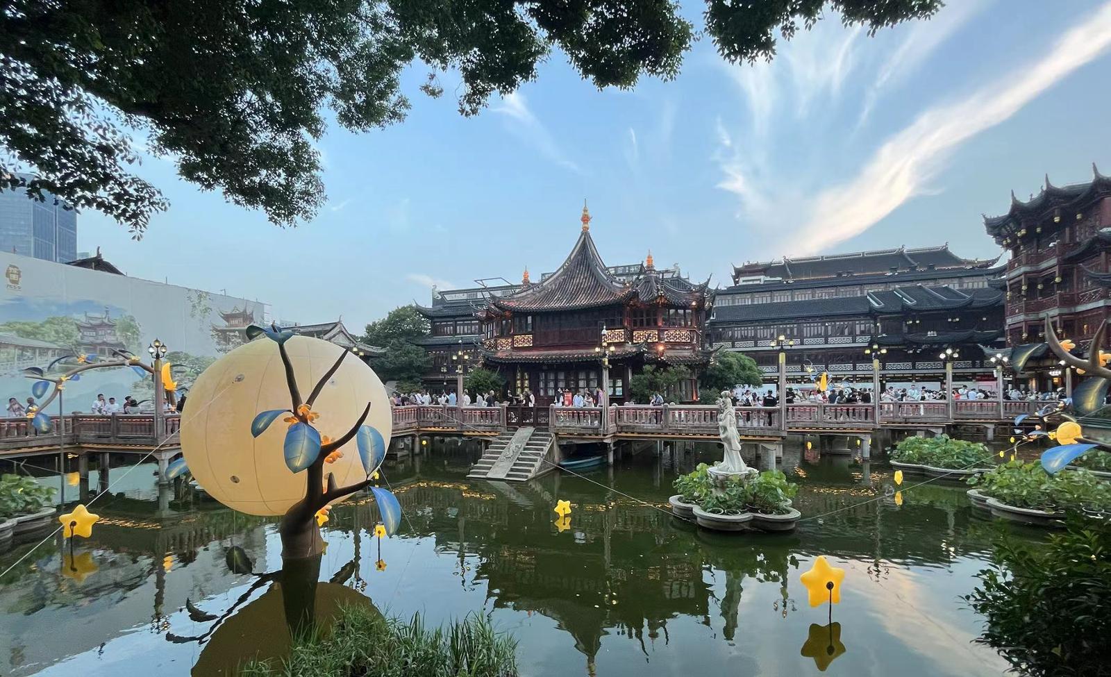 汇聚老城厢和外滩的点点光影,串联起独具东方生活美学意境的citywalk之路,从传统的浪漫月神,到天涯共此时的现代表达,融古汇今的大豫园,展现出城市中心文商旅综合地标的特色之美。