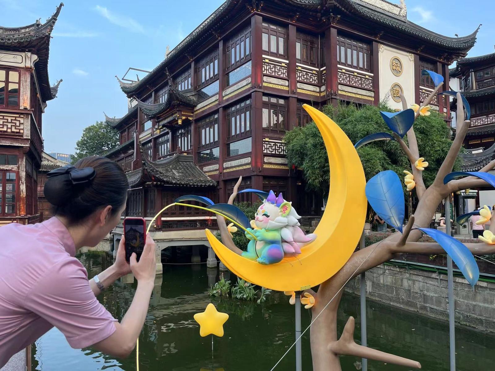 去“大豫园”数月亮(视频)。劳动报记者贡俊祺 摄影