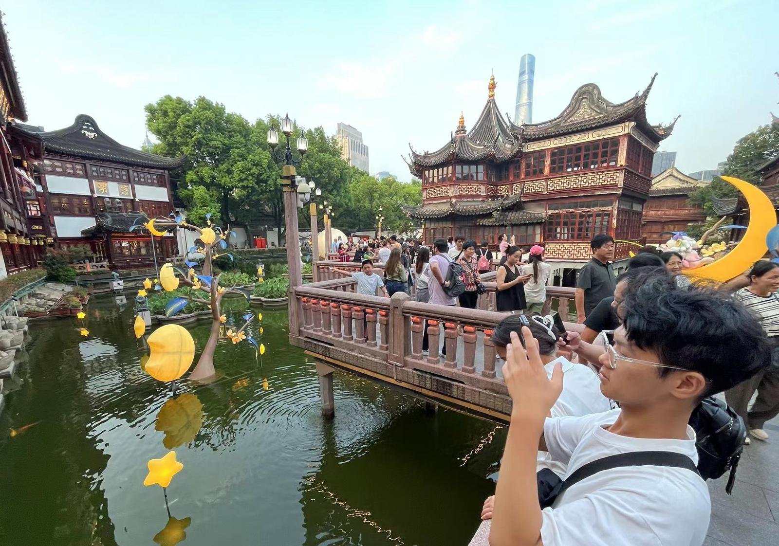 头图:在九曲桥上感受“十二沐月”。劳动报记者贡俊祺 摄影