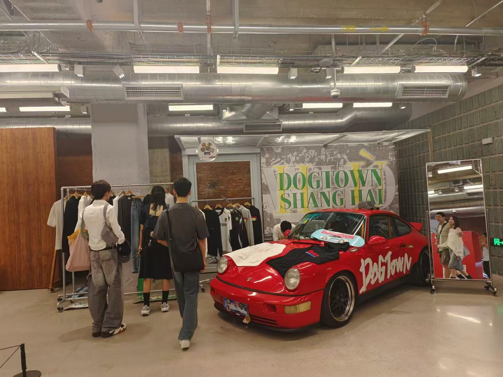 “这些服装是收藏品,有一些中古的服饰、也有一些品牌的藏品,都是摇滚风。”在HAI550一楼,正在进行一场“50年摇滚服装文化展览”,数百件存世稀有的服装正在展出。现场,还把保时捷跑车搬入了室内。工作人员告诉记者,这些服装多来自富民路上一家线下实体集合店,希望通过展览形式将收集自世界各地具有文化属性及时尚历史意义的服饰创意再造,赋予其新的生命力。