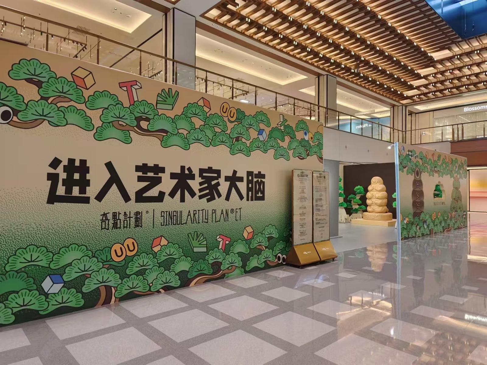 “看到这一句‘进入艺术家大脑’,就感到十分‘烧脑’,特别想走进去看看。”市中心网红商圈上海苏河湾万象天地,“奇点计划”快闪店吸引了不少年轻消费者驻足。