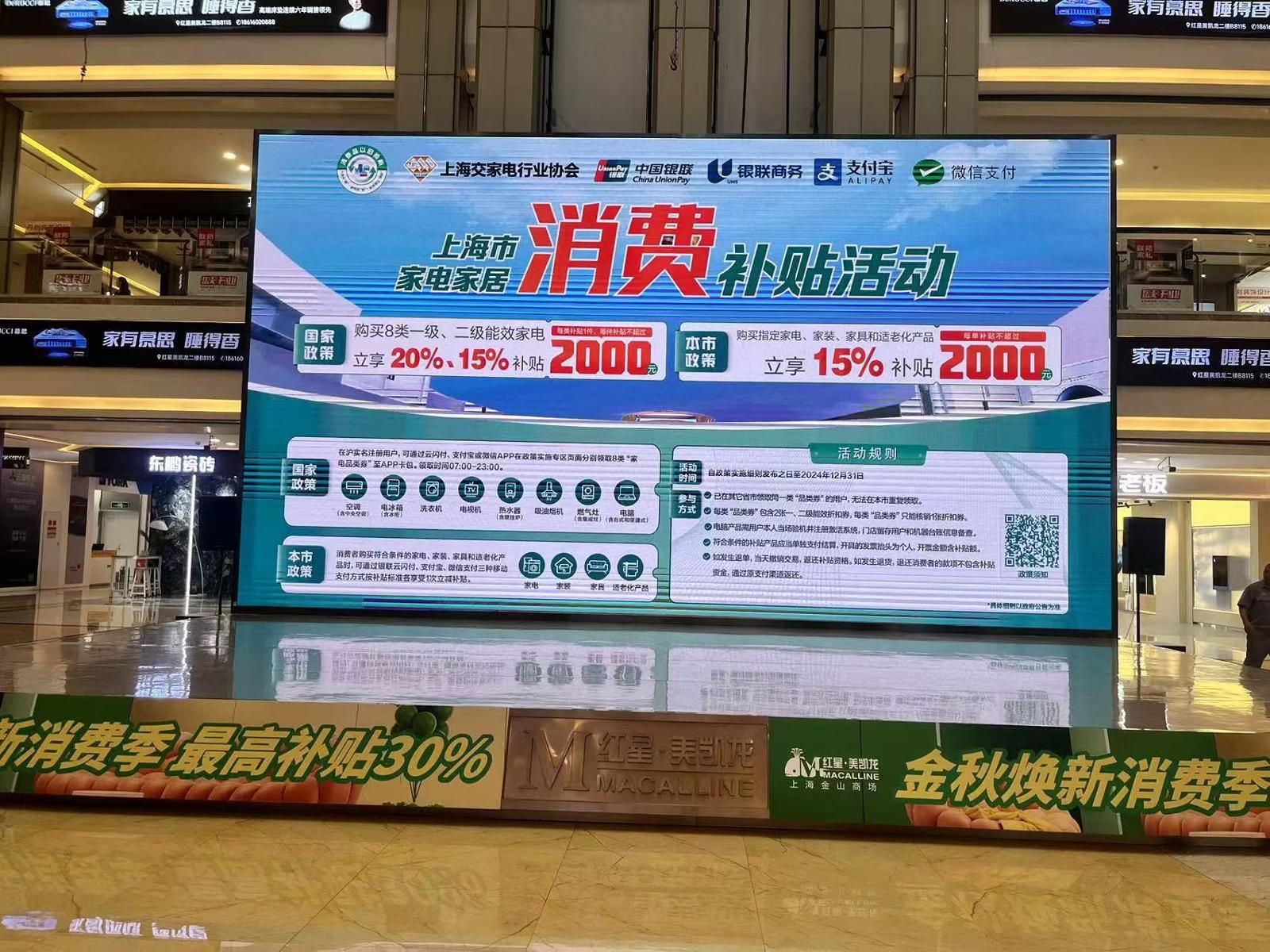 上海统筹安排资金超过40亿元,支持家电、家装建材、家具、适老化产品等消费品“以旧换新”。今年国庆期间,适逢“以旧换新”契机,10月7日,劳动报记者从沪上红星美凯龙、苏宁易购等家居、家电行业龙头方面获悉,节日期间,家电、家居“以旧换新”热,销售创新高。