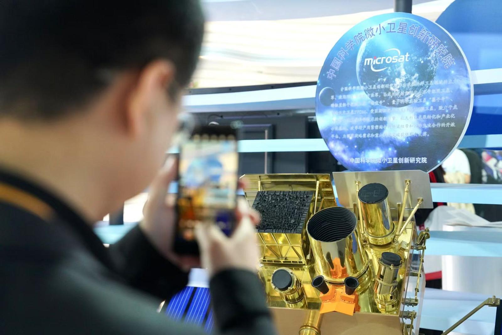 中国科学院微小卫星创新研究院,带来了中法天文卫星的模型。劳动报记者贡俊祺 摄影