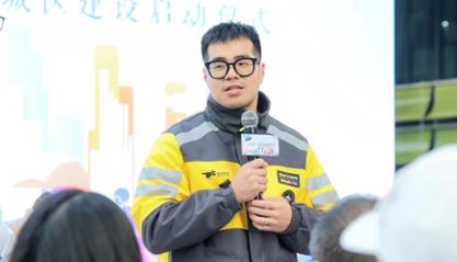 图为美团外卖骑手在启动仪式上发言。高飞 摄影