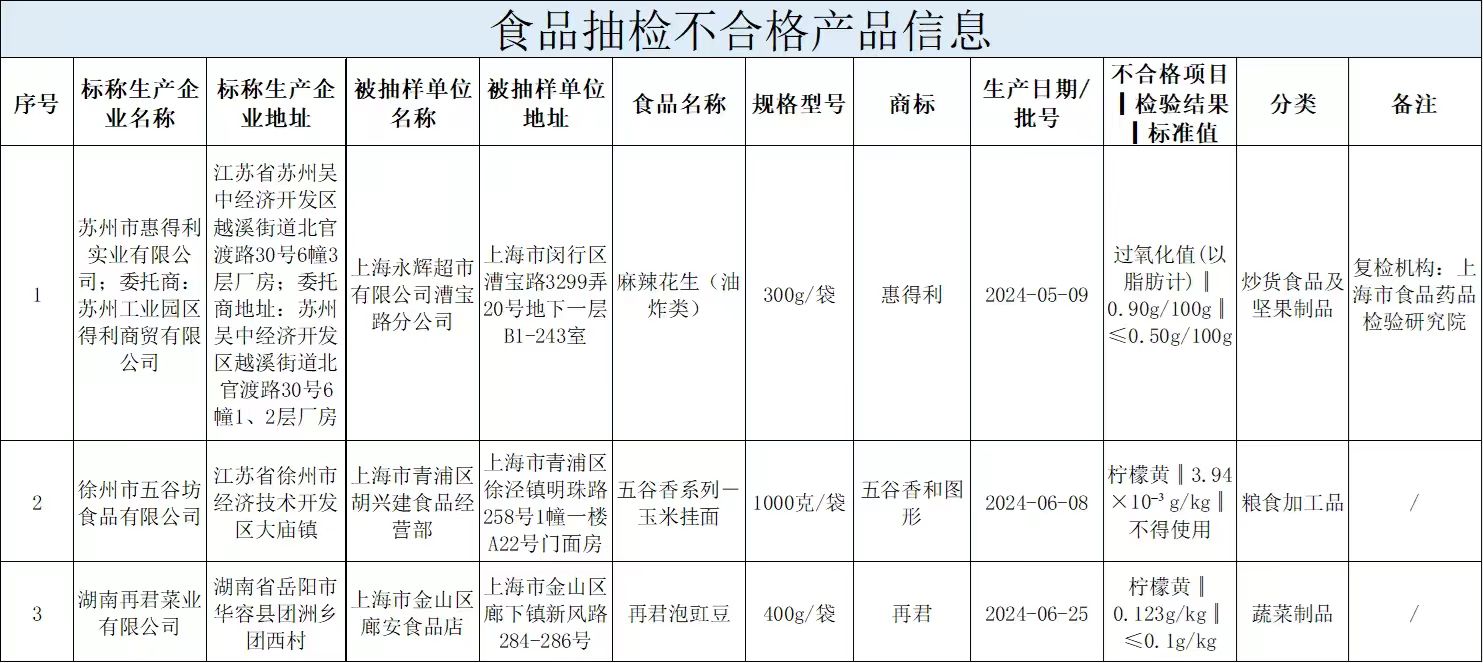 上海市市场监管局介绍,根据近日发布的上海市市场监管局2024年第36期省级食品安全抽检信息,本次抽检信息涉及8大类食品,包括:保健食品、饼干、炒货食品及坚果制品、豆制品、粮食加工品、食用油、油脂及其制品、蔬菜制品和水产制品。抽检样品共计1606批次,其中合格1603批次、不合格3批次。