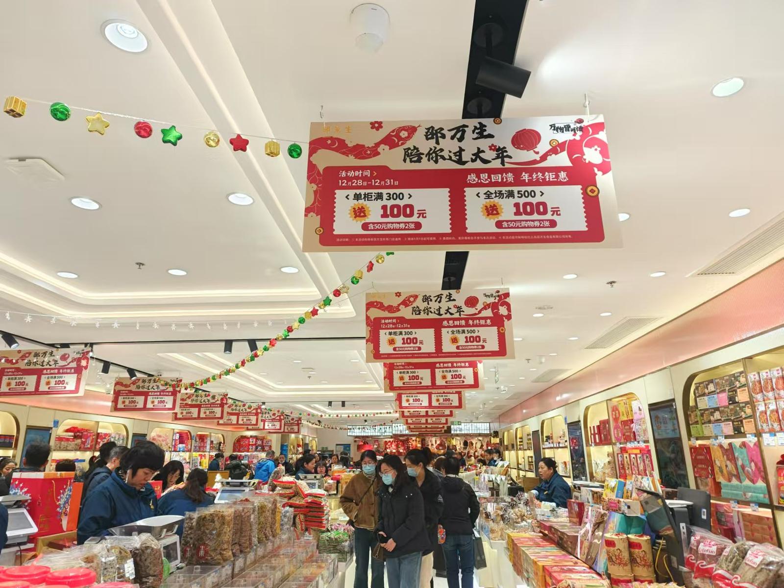 “今天,来店的消费者我们都会送上热气腾腾的暖身姜茶。考虑到马上过春节了,糕点柜和综合柜每消费满100元就赠送一个宁式年糕。除了南京路促销优惠券外,门店还有额外的满300元送30元券活动,赠券可自1月1日起至1月31日使用。”楼晨介绍,新春临近,目前年货品类中,南北货和腌腊礼包颇为畅销。