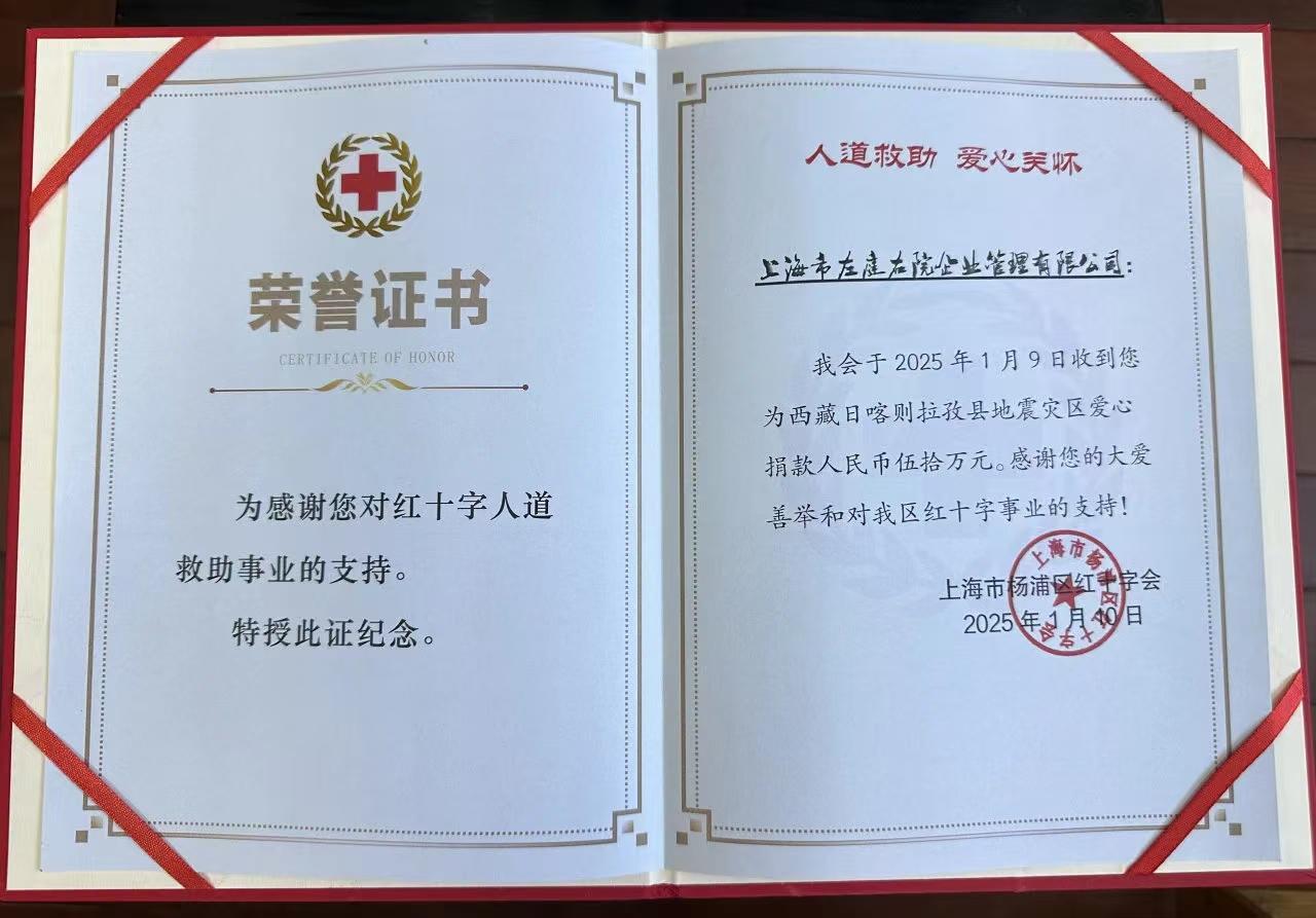 左庭右院通过杨浦区红十字会向日喀则灾区捐款50万元。左庭右院供图