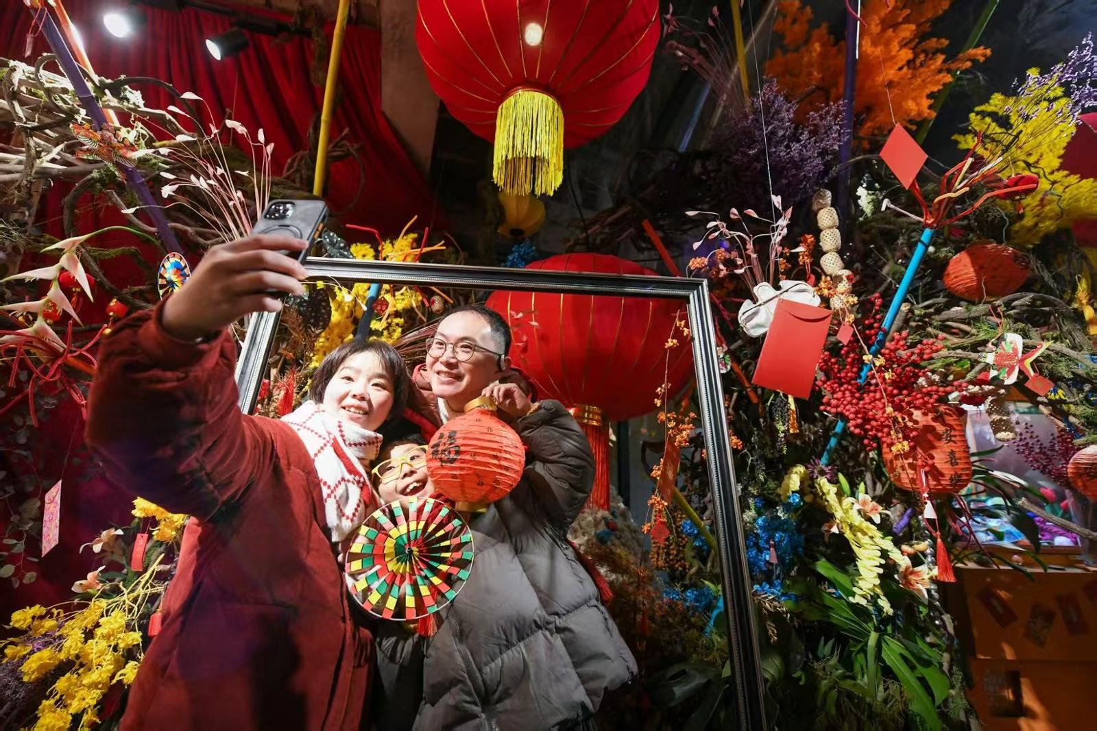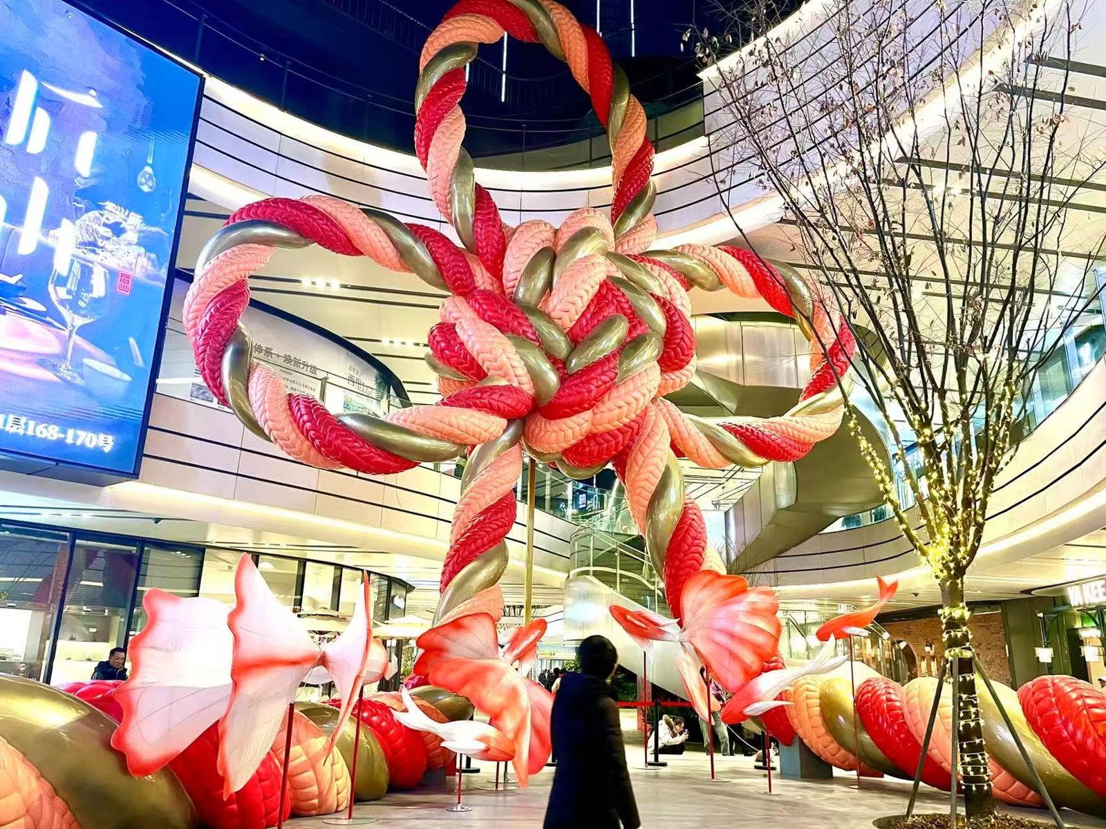 位于天潼路的万象天地,超大中国结展现街头,带来浓浓年味。贡俊祺摄