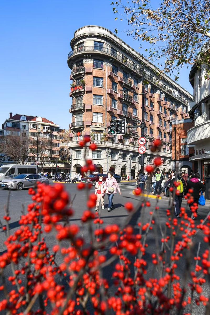 申城大街小巷处处张灯结彩。淮海中路上,火红的灯笼串已高高挂起。颜筱依摄