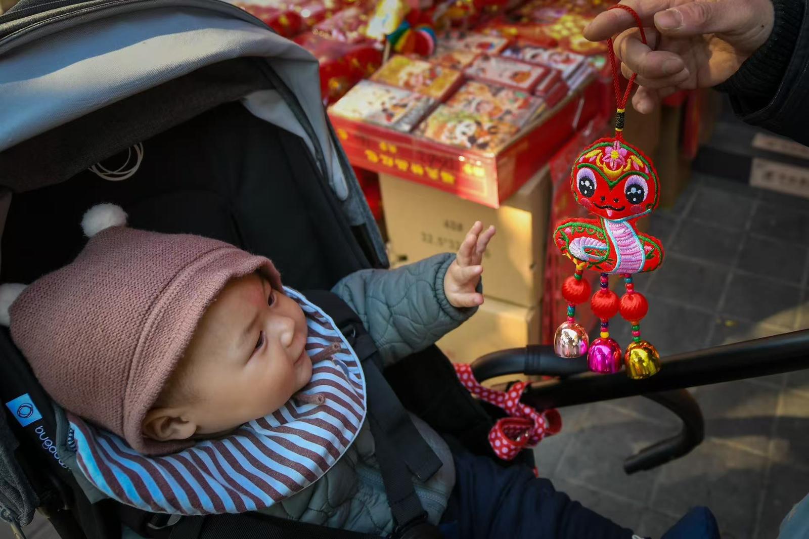 小商品市场内,精美灵动的蛇年挂件惹人爱,不分年龄。颜筱依摄