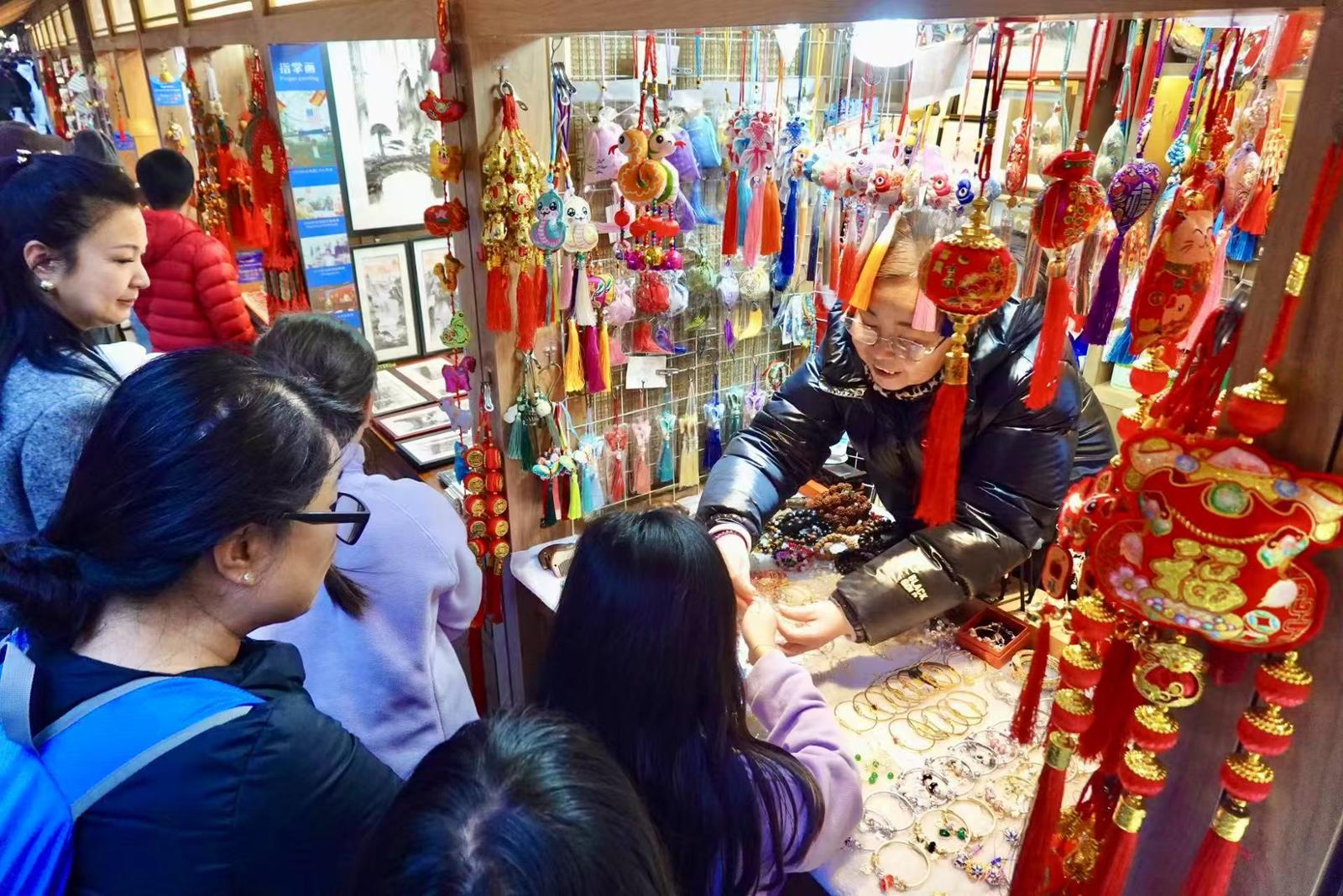 豫园商圈内,年味商品受市民喜爱。贡俊祺摄