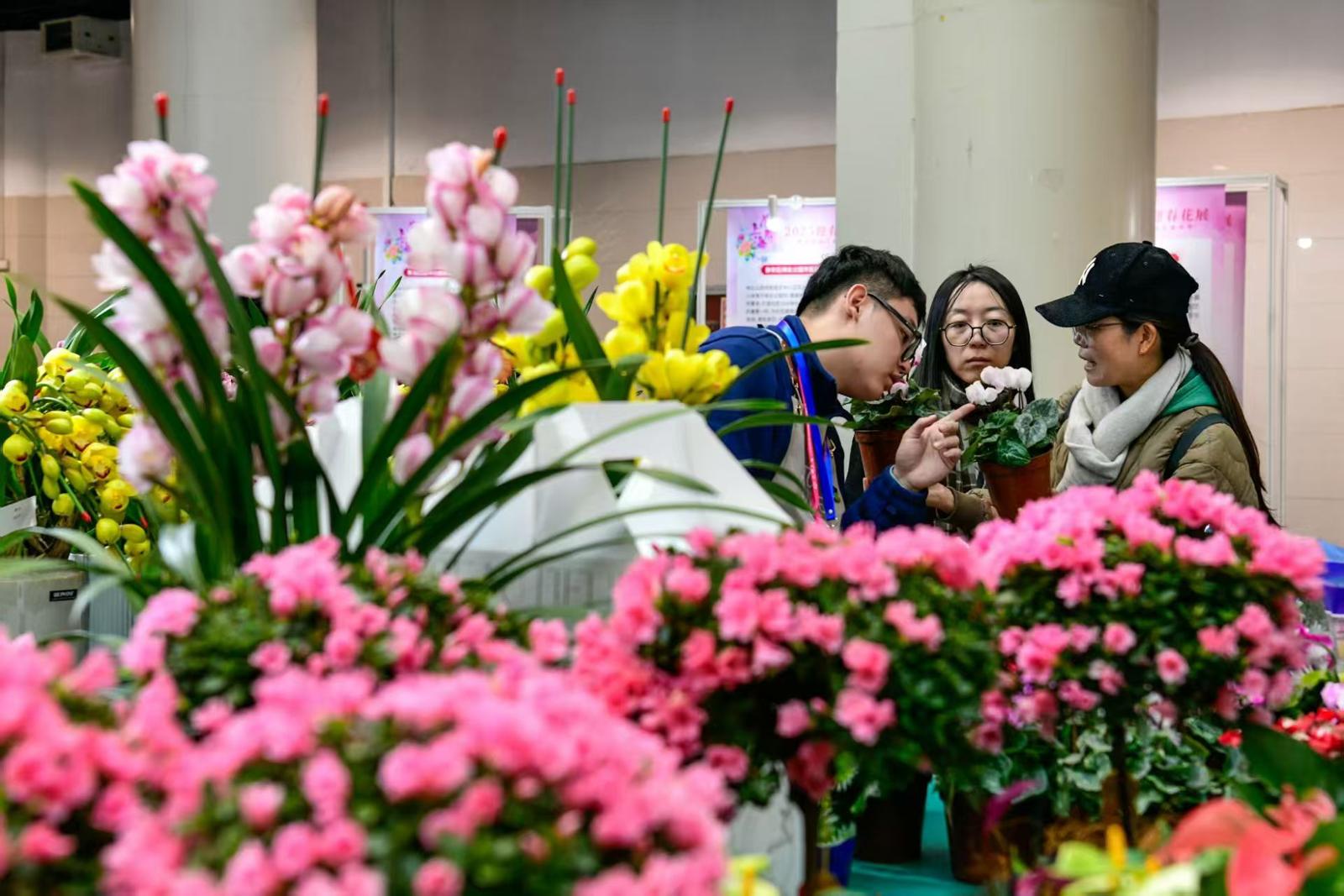 蝴蝶兰、冬青、杜鹃……各类年宵花热销,满眼都是过年的味道。颜筱依摄
