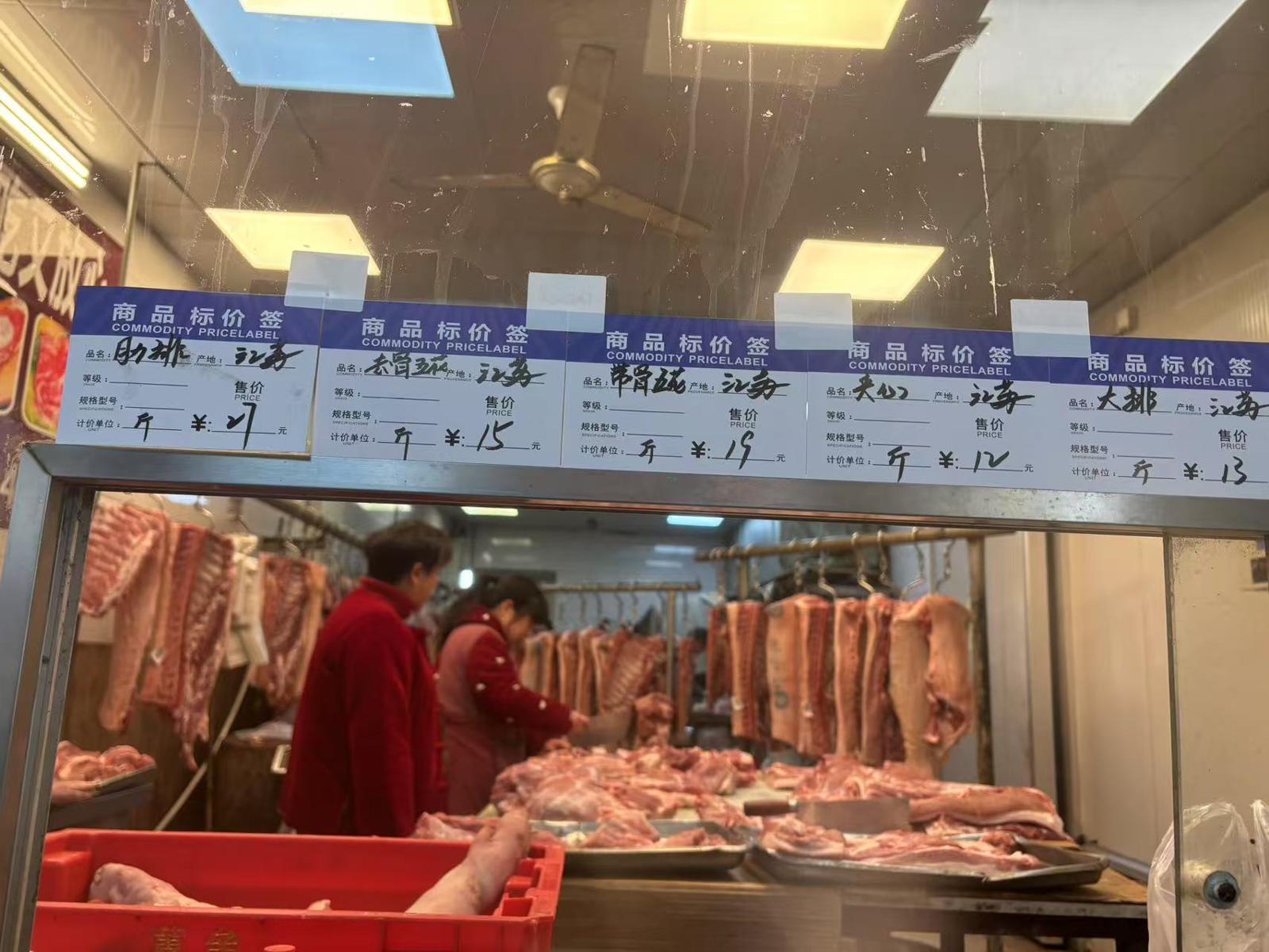 “西郊国际是沪上猪肉供应的主渠道之一,目前,猪肉均价在19-19.5元/公斤,均处在正常水平。每晚20时至次日清晨最为忙碌。”西郊国际肉类冻品部经理赵轶告诉劳动报记者,在西郊国际除了猪肉批发外,在市场也设有零售区域,周边居民、甚至不少从市区赶来的本市居民也会来此进行采买。现场来看,以一家正在零售的上海聚鑫徕食品销售有限公司为例,其夹心肉零售价格为12元一斤,去骨五花肉为15元一斤,肋排为27元一斤,低于一般农贸市场和标准化菜场。